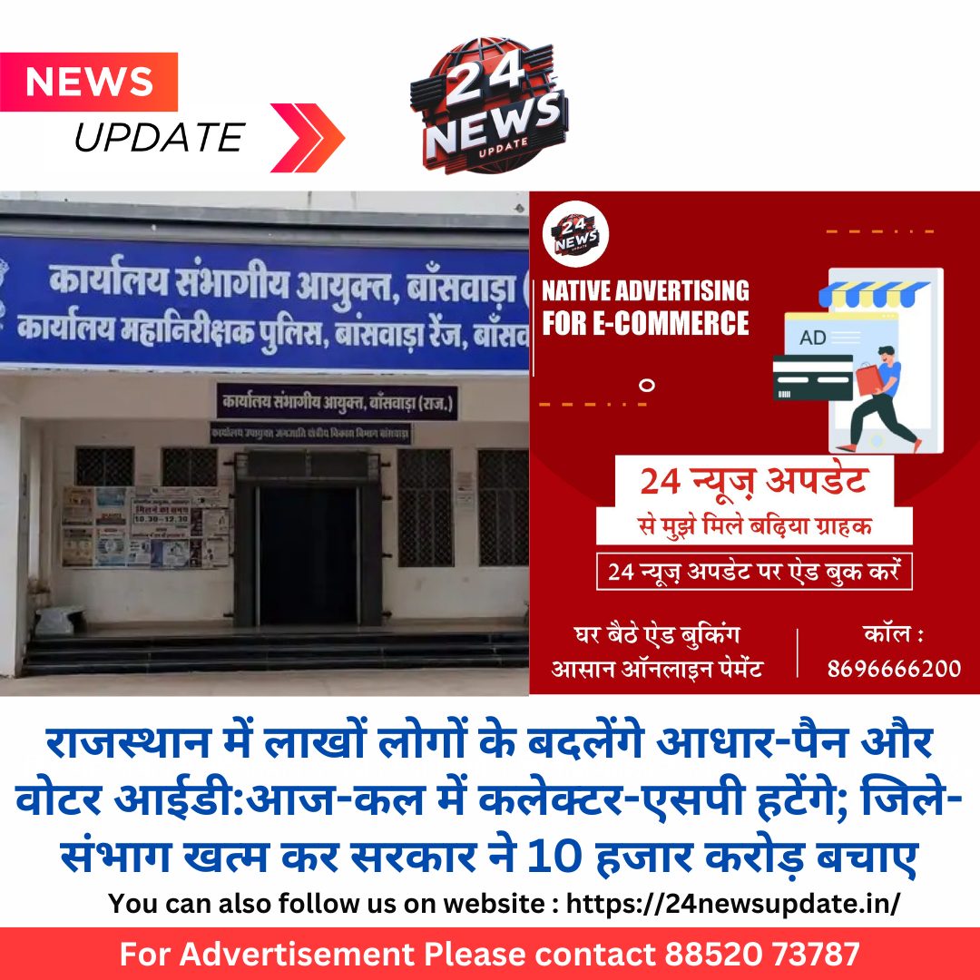 जयपुर. राजस्थान से 9 जिले और 3 संभाग खत्म होने के बाद अब बदलाव की प्रक्रिया शुरू हो गई है। खत्म किए गए जिलों से अब कलेक्टर, एसपी और जिला स्तर के अफसरों को हटाने की प्रक्रिया शुरू होगी। नए साल में जिला स्तर के अफसरों को दूसरे जिलों में भेजने के आदेश जारी होंगे। सरकार ने दूदू, केकड़ी, शाहपुरा, नीमकाथाना, गंगापुरसिटी, जयपुर ग्रामीण, जोधपुर ग्रामीण, अनूपगढ़, सांचौर जिलों को निरस्त कर पुराने जिलों में मर्ज किया है। साथ ही बांसवाड़ा, पाली और सीकर संभागों को खत्म किया है।