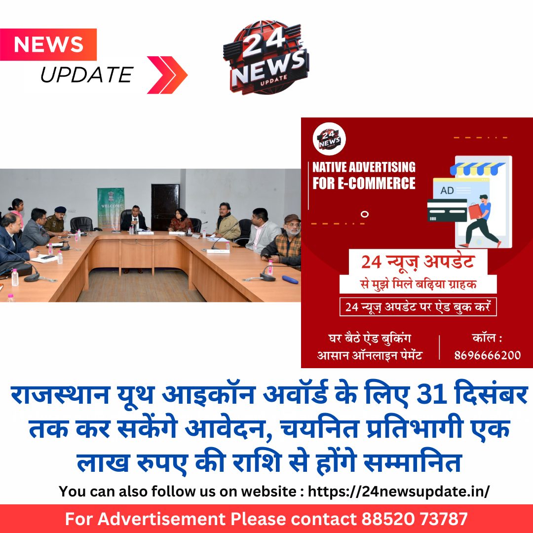 24 न्यूज अपडेट, जयपुर। राज्य सरकार की बजट घोषणा वर्ष 2024-25 के तहत राष्ट्रीय युवा पुरस्कार की तर्ज पर राजस्थान यूथ आइकॉन अवॉर्ड की शुरुआत की गई है। इस पुरस्कार का उद्देश्य विभिन्न क्षेत्रों में उत्कृष्ट कार्य करने वाले युवाओं की पहचान कर उन्हें सम्मानित करना है। यह पुरस्कार राष्ट्रीय युवा दिवस 12 जनवरी के अवसर पर प्रदान किए जाएंगे।