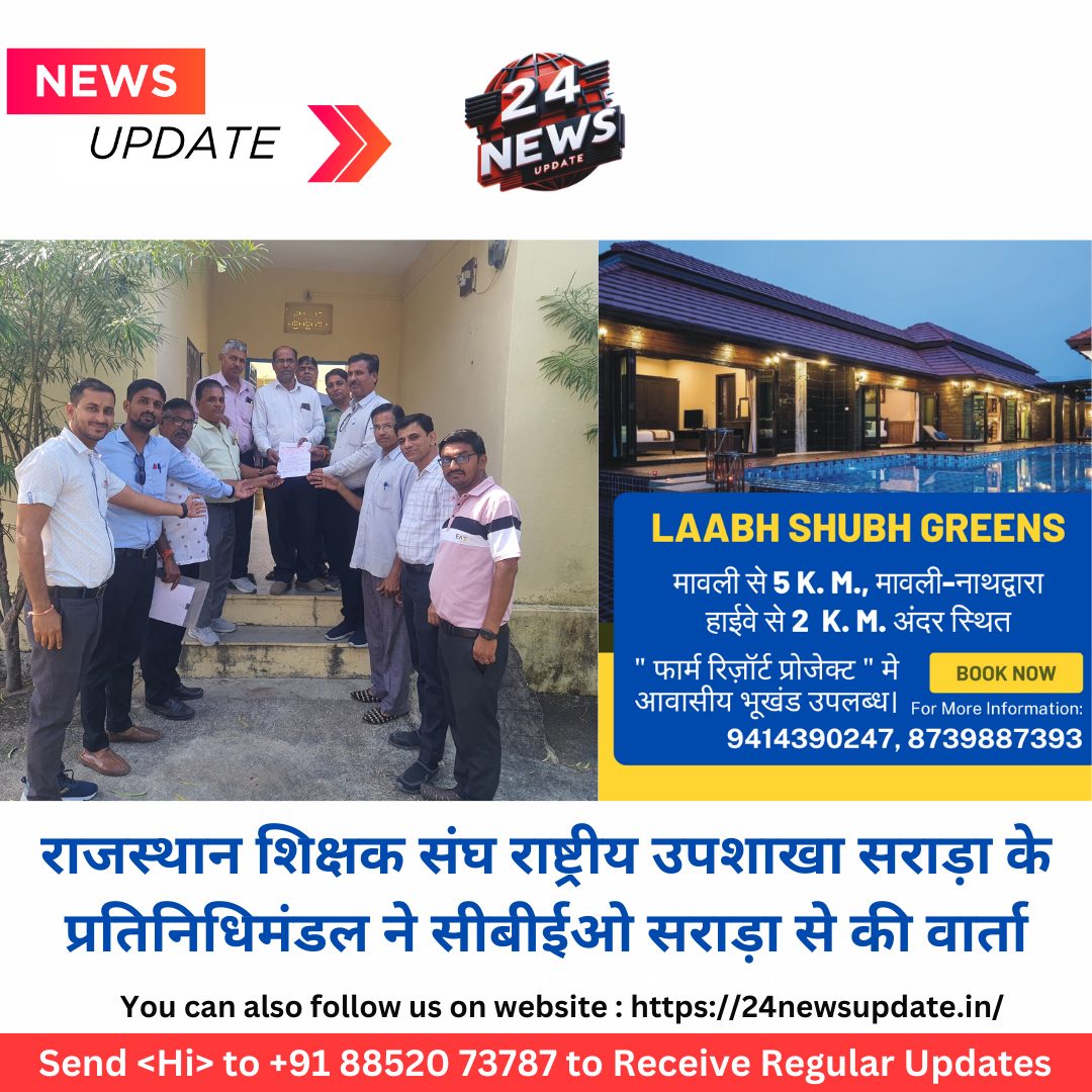 24 न्यूज़ अपडेट सराड़ा. सराड़ा ब्लॉक में कार्यरत शिक्षकों की विभिन्न समस्याओं को लेकर शिक्षक संघ राष्ट्रीय के पदाधिकारियों ने मुख्य ब्लॉक शिक्षा अधिकारी नाथुलाल बुनकर से की वार्ता
