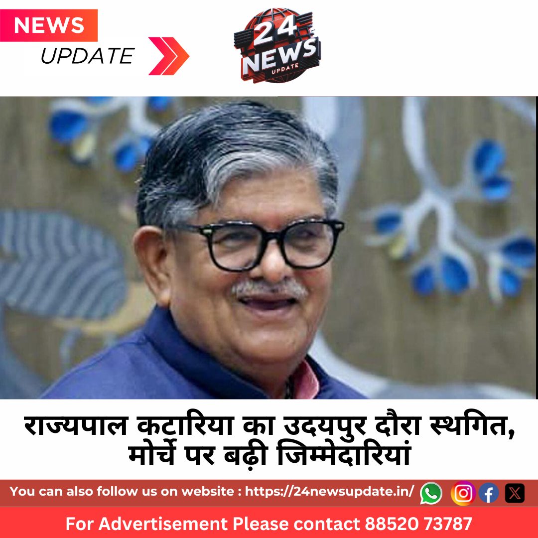 24 न्यूज अपडेट, उदयपुर। पंजाब और चंडीगढ़ के राज्यपाल गुलाबचंद कटारिया का 9 मई को प्रस्तावित उदयपुर दौरा वर्तमान सुरक्षा परिस्थितियों के मद्देनजर स्थगित कर दिया गया है। हाल ही में बढ़ी सुरक्षा चुनौतियों और पंजाब में चप्पे-चप्पे पर तैनात सुरक्षा बलों के बीच, हवाई मार्गों पर लगी अस्थायी रोक व बाद की सुरक्षा परिस्थितियों व तैयारियों को देखते हुए कटारिया ने अपने गृह नगर उदयपुर का दौरा निरस्त करने का निर्णय लिया है। राज्यपाल के पद की संवैधानिक जिम्मेदारियां और मौजूदा स्थिति की गंभीरता को देखते हुए कटारिया ने यह निर्णय लिया है। राज्य की आंतरिक सुरक्षा सुनिश्चित करने के प्रति उनकी प्रतिबद्धता को रेखांकित किया हैं