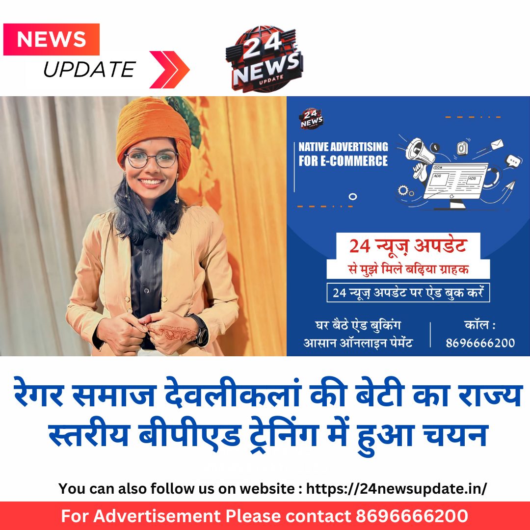 24 न्यूज़ अपडेट बर मारवाड़। रेगर समाज की बेटी का राज्य स्तरीय बीपीएड ट्रेनिंग में हुआ चयन। पाली जिला एवं ब्यावर जिले की ग्राम पंचायत क्षेत्र में महिला के रूप में प्रथम बार चयन हुआ है। जो यह रेगर समाज के लिए गर्व की बात है । ग्रामिणो ने रितिका चौहान को साफा माला पहनाकर स्वागत किया गया। ग्राम पंचायत क्षेत्र की रितिका चौहान पुत्री दिलीप चौहान, देवलीकलां मध्यम वर्ग परिवार से है। जिन्होंने अपनी दसवीं एवं बाहरवी प्रथम श्रेणी से पास किया। राजस्थान सरकार द्वारा गार्गी पुरस्कार एव लैपटॉप से भी सम्मानित हुए हैं। वालीबॉल प्रतियोगिता दो बार राजस्थान स्तरीय प्रतियोगिता में चयनित हुआ । जयनारायण व्यास विश्वविद्यालय जोधपुर कि अधिकृत ऐश्वर्या कोलेज पाली से बीएससी बायोलॉजी से प्रथम श्रेणी से उत्तीर्ण हुए। आदर्श महिला टि.टी कोलेज बिलाड़ा से आपने मास्टर डिग्री बी एड प्रथम श्रेणी से उत्तीर्ण हुए। आज बीपीएड टिंचर ट्रेनिंग सेंटर श्री नाथ टिंचर ट्रेनिंग महाविद्यालय बड़ी सादड़ी,चिन्तोंडगढ में चयनित होने पर ग्रामिण क्षेत्र की बेटी रेगर समाज व जिले का नाम रोशन करेगी । रेगर समाज 44 खैडा के अध्यक्ष लुणाराम तंवर रास एवं मुख्य सलाहकार मंत्री रामेश्वरलाल चौहान देवली कलां ने समाज की बेटी को बड़े हर्ष के साथ शुभकामनाएं देते हुए खुशी जाहिर की। ग्राम पंचायत क्षेत्र महिला का प्रथम बार आज चयन होने पर उसके लिए उसके उज्जवल भविष्य की शुभकामनाएं बधाई दी । रेगर समाज के बालक बालिका शिक्षा के क्षेत्र में आगे बढ़े तथा खेलकूद प्रतियोगिता में भी समाज का नाम रोशन करें उसके लिए समाज के बच्चों को ज्यादा से ज्यादा खेलकूद प्रतियोगिता में भाग लेने की प्रेरणा दी ।