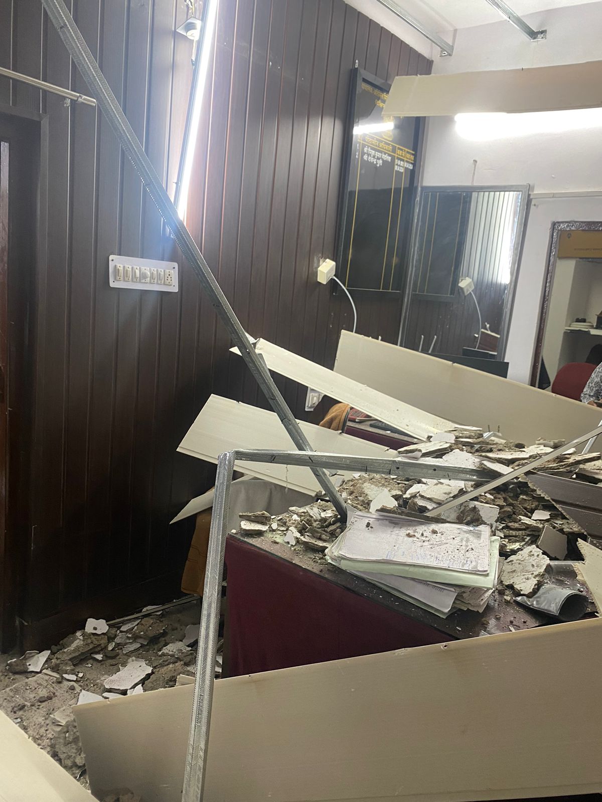 निवेदन किया गया कि जिला न्यायालय परिसर, उदयपुर में नीम के चौक में प्रथम तल पर न्यायालय एसीजेएम प्रथम साउथ उदयपुर स्थित है। दोपहर करीब 1 बजकर 40 मिनट पर न्यायालय के पीठासीन अधिकारी देवेन्द्र पुरी न्यायालय के लंच टाईम होने से उनके अवकाशागार में भोजन कर रहे थे। तभी अचानक पीठासीन अधिकारी के अवकाशागार के चेम्बर की छत का प्लास्तर लोहे की फ्रेम के साथ पूरे चेम्बर की छत पीठासीन अधिकारी के सिर पर गिर गई जिससे पीठासीन अधिकारी को सिर में अंदरूनी गभीर चोटें आई हैं। उपरोक्त के क्रम में कहा गया कि पूर्व में वर्ष अगस्त 2022 चेम्बर के छत का प्लास्तर गिर जाने से सार्वजनिक निर्माण विभाग नंगर खण्ड, उदयपुर द्वारा चेम्बर के रिपेयरिंग हेतु 743 लाख की आवश्यकता बताई गई जिस सम्बन्ध में इस कार्यालय के पत्र क्रमाक स्था/2022/161 दिनाक 2308 2022 द्वारा बजट उच्च न्यायालय से आवटन करने हेतु जिला एवं सेशन न्यायाधीश महोदय, उदयपुर से निवेदन किया गया। इस पर जिला एवं सेशन न्यायाधीश उदयपुर द्वारा उनके पत्र क्रमांक स्था/प्रशा/2022/5709 दिनाक 3108 2022 द्वारा राजस्थान उच्च न्यायालय, जोधपुर से उक्त बजट के आवंटन के लिए निवेदन किया गया, जिस पर उच्च न्यायालय जोधपुर द्वारा उनके पत्र द्वारा उक्त न्यायालय के चेम्बर की मेन्टीनेन्स के लिए 7.43 लाख रूपये आवंटित किये गए। इस पर सार्वजनिक निर्माण विभाग द्वारा इस न्यायालय व चेम्बर की रिपेयरिंग का कार्य करवाया गया।