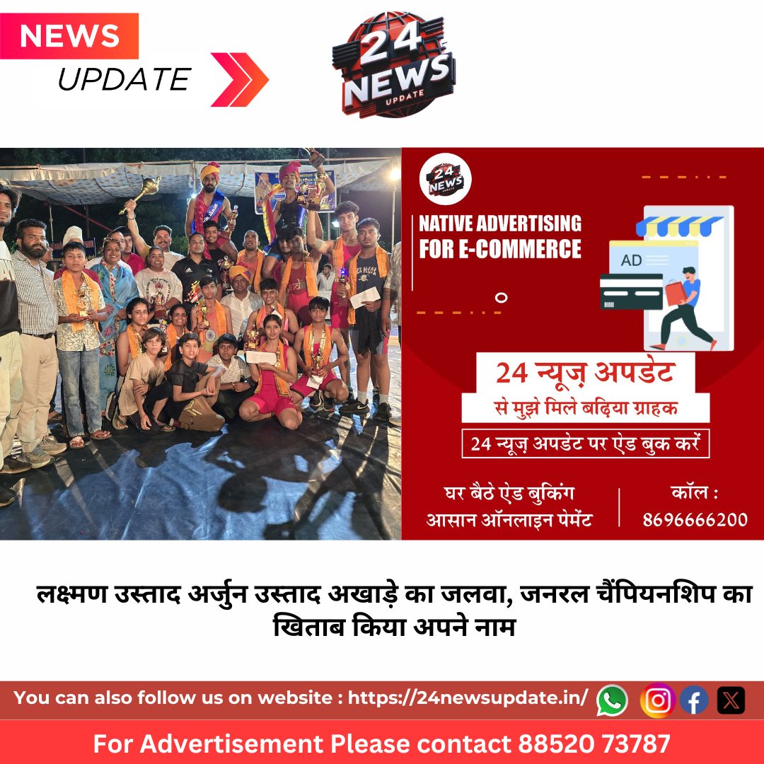 24 News Update उदयपुर, 31 मई। स्व. अंबालाल चौधरी की स्मृति में आयोजित उदयपुर-राजसमंद केसरी कुश्ती दंगल में लक्ष्मण उस्ताद-अर्जुन उस्ताद अखाड़े के पहलवानों ने शानदार प्रदर्शन करते हुए जनरल चैंपियनशिप का खिताब अपने नाम किया। महिला, किशोर, कुमार वर्ग में भी अखाड़े के पहलवानों का दबदबा देखने को मिला। महिला वर्ग में पलछीन जाट ने उत्कृष्ट कौशल का प्रदर्शन करते हुए चतुर्भुज व्यायाम शाला की पहलवान नंदनी जोशी को बैक साल्टो दांव से परास्त कर 10–0 के स्कोर से ‘उदयपुर महिला केसरी’ का खिताब जीता। वहीं, साथी अखाड़े की लक्षिता और साजिया शेख ने तृतीय स्थान प्राप्त किया।