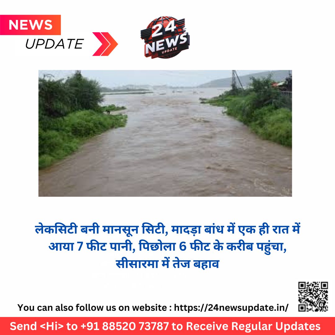 24 न्यूज अपडेट. उदयपुर। उदयपुर में लगातार तीसरे दिन रविवार को रिमझिम तो कभी मूसलाधार बारिश का दौर चलता रहा। पहली बार इस मौसम में दिनभर बारिश होती रही। इससे मौसम सुहाना हो गया व पिकनिक स्पोट आबाद हो गए। राजस्थान में 26 अगस्त तक भारी बारिश का दौर चलेगा लेकिन 27 अगस्त से मानसून एक बार फिर ब्रेक ले सकता है। इस ब्रेक टाइम के दौरान राज्य में कुछ जगहों पर छुटपुट बारिश होगी, जबकि अधिकांश जगहों पर मौसम साफ रहेगा। रविवार को अवकाश होने पर पहली बार बडी संख्या में लोग आसपास के नदी-नालों व पहाडी स्थानों वाले पिकनिक स्पॉट पर पहुंचे जबकि ये दृश्य जुलाई में ही नजर आ जाते हैं। इस बार बारिश का दौर बहुत देर से आरंभ होने से सुखिया सोमवार और पूरा सावल बिना झमाझम बारिश के बीत गया था। कल के आंकडों पर नजर डालें तो उदयपुर गिर्वा में 25 मिलीमीटर, बड़गांव में 31, गोगुंदा में 35, वल्लभनगर में 21, मावली में 27, खेरवाड़ा में 78 और ऋषभदेव में 76 मिलीमीटर बारिश दर्ज की गई। लेकसिटी में लगातार बारिश से झील, तालाब और बांधों में भी पानी की आवक जारी है। पिछोला झील और फतहसागर झील का जलस्तर 6 फीट के करीब पहुंच चुका है। पिछोला की भराव क्षमता 11 फीट और फतहसागर की 13 फीट है। आकोदड़ा बांध में 3.5 फीट जलस्तर पहुंच गया है। मादड़ी बांध का जलस्तर 9 फीट से बढ़कर 16 फीट हो गया है। देवास प्रोजेक्ट-2 के तहत बनाए गए मादड़ी बांध में एक ही रात में 7 फीट की बढ़ोत्तरी हुई है।