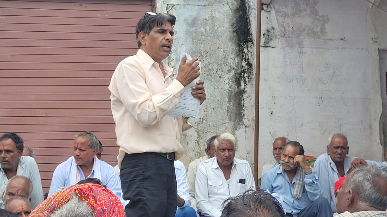 निम्बाहेडा़-मालवीय लोहार समाज एलवा माताजी चौखले के समस्त समाजजन को संबोधित करते चौखला अध्यक्ष डॉक्टर हीरालाल लुहार।