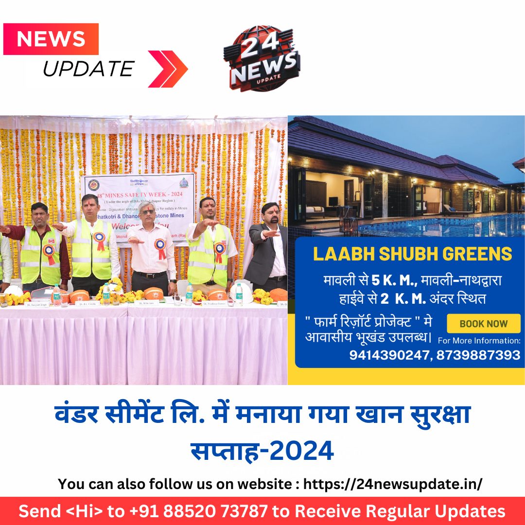24 न्यूज़ अपडेट निम्बाहेडा। वंडर सीमेंट लि. की भट्टकोटड़ी एवं धनोरा लाईम स्टोन माइन्स पर मंगलवार को खान सुरक्षा महानिदेशालय, उदयपुर क्षेत्रके तत्वाधान में मनाया जा रहे 48वें खान सुरक्षा सप्ताह के अन्तर्गतकम्पनी के खान कार्यालय परिसर में यूनिट हेड नितिन जैन केमुख्य आतिथ्य तथा महानिदेषालय, उदयपुर से निरक्षणदल के कन्वेनरश्री प्रदीप डावरएवं सदस्य बी. एल. फिरोदा, रणजीत सिंह, चतर सिंह तथा वंडर सीमेंट केसहायक उपाध्यक्ष ओ. पी. राजपुरोहित के विषिष्ठ आतिथ्य में आयोजित हुआ। कार्यक्रम के दौरान युनिट हेड जैन ने उपस्थित समस्त कर्मचारियों से व्यवहारिक सुरक्षा एवं सुरक्षा उपकरणों का नियमित उपयोग करते हुए सिस्टमैटिक एवं साइंटिफिक तरीके से खनन पर जोर दिया। साथ ही सुरक्षित तरीके से कार्य करने की अपील की।इस दौरान श्री डावर ने सुरक्षा के महत्व पर प्रकाष डालते हुए कार्य के दौरान सुरक्षा के विभिन्न पहलूओं के बारे में जानकारी दी। तथा सुरक्षा उपकरणों का नियमित उपयोग करते हुए सुरक्षित तरीके से कार्य संपादित करने की बात कहते हुए वंडर सीमेंट लि. द्वारा खान सुरक्षा के प्रति किये जा रहे कार्यों कि खुले मन से सराहना की।