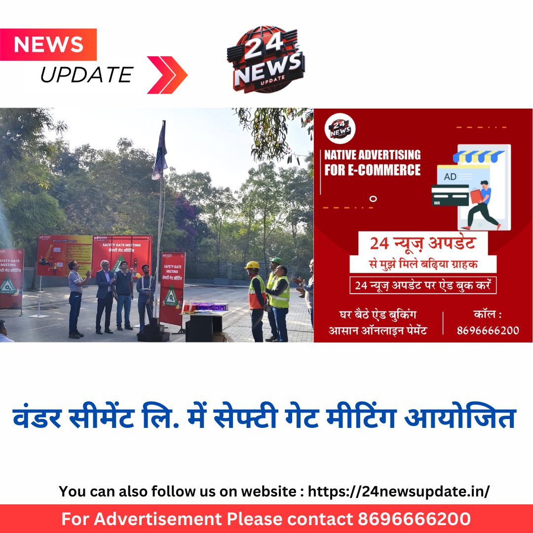24 न्यूज अपडेट निम्बाहेड़ा .वंडर सीमेंट लिमिटेड, आर. के. नगर, निम्बाहेड़ा में आज दिनाकं 02.12.2024 को ‘‘क्रेन एवं लिफ्टिंग सेफ्टी’’ की थीम पर मासिक सेफ्टी गेट मीटिंग कम्पनी के यूनिट हेड श्री नितिन जैन की अध्यक्षता में आयोजित कि गई। मीटिंग की शुरुआत सीनियर वर्कमैन द्वारा सेफ्टी फ्लैग फहराकर हुई। इस अवसर पर यूनिट हेड श्री जैन ने सेफ्टी गेट मीटिंग को संबोधित करते हुए सभी को सुरक्षा के महत्व को जानने और उस पर अमल करने के साथ ही सभी कर्मचारियों को सर्दी के मौसम में कार्य व्यवहार की सुरक्षा के अनुरुप फीट गर्म कपड़ो का उपयोग कर सुरक्षित कार्य करने की सलाह दि तथा वाहन चालको को कोहरे के दौरान वाहन का फोग लेम्प अथवा हेड लाईट ऑन कर सुरक्षित गति से वाहन संचालित करने की सलाह दी। श्री जैन ने इस माह की सुरक्षा थीम ‘‘क्रेन एवं लिफ्टिंग सेफ्टी’’ के अनुसार कार्य स्थल पर नियमित सुरक्षा नियमों की पालना करते हुए कार्य संपादित करने के लिये प्रेरित किया। इस दौरान श्री अमित मेहता, उपाध्यक्ष (ऑपरेशन) तथा श्री राजेन्द्र शर्मा उपाध्यक्ष (प्रोसेस) भी मंच पर उपस्थित थे।