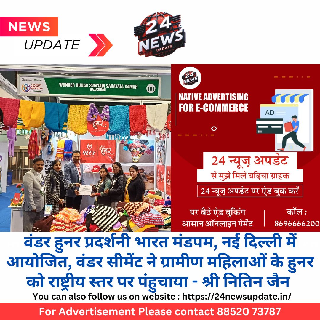 24 न्यूज़ अपडेट निम्बाहेडा। वंडर सीमेंट लि , निम्बाहेड़ा के सीएसआर नींव इनिशिएटिव के हुनर कार्यक्रम द्वारा प्रशिक्षित महिलाओं द्वारा तैयार उत्पादों की प्रदर्शनी नई दिल्ली में आयोजित ग्रामीण भारत महोत्सव 2025 में राष्ट्रीय स्तर की प्रदर्शनी आयोजित की गई।