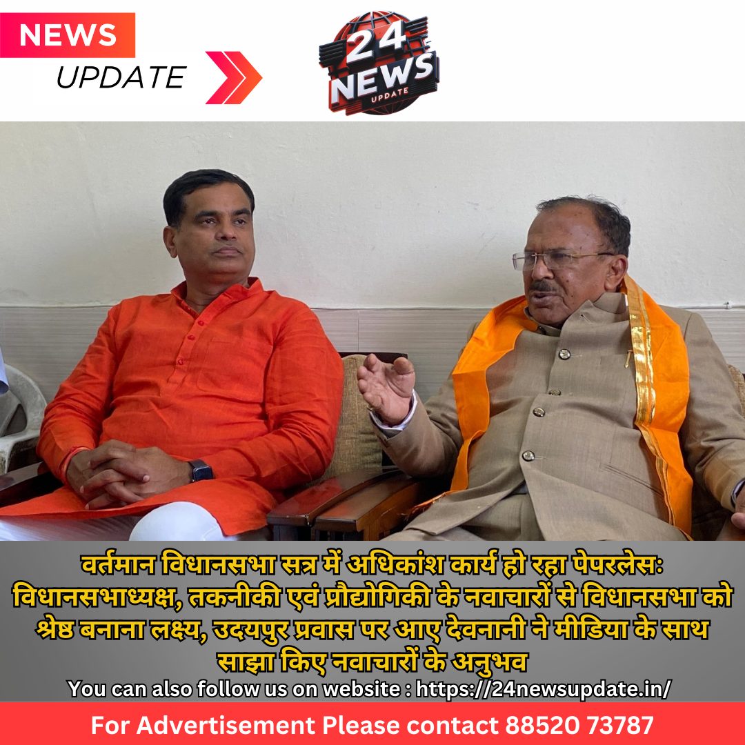 24 न्यूज़ अपडेट उदयपुर। तकनीकी एवं प्रौद्योगिकी के नवाचारों के माध्यम से राजस्थान विधानसभा को देश की एक श्रेष्ठ विधानसभा बनाने के प्रयास किए जा रहे हैं। वर्तमान में जारी विधानसभा सत्र के दौरान इन नवाचारों का सकारात्मक असर देखने को मिला है। अगले सत्र से विधानसभा के कामकाज पूरी तरह पेपर लेस कर दिए जाएंगे। यह बात राज्य विधानसभा अध्यक्ष श्री वासुदेव देवनानी ने अपने उदयपुर प्रवास के दौरान मंगलवार को सर्किट हाउस में मीडिया के साथ चर्चा के दौरान कही।