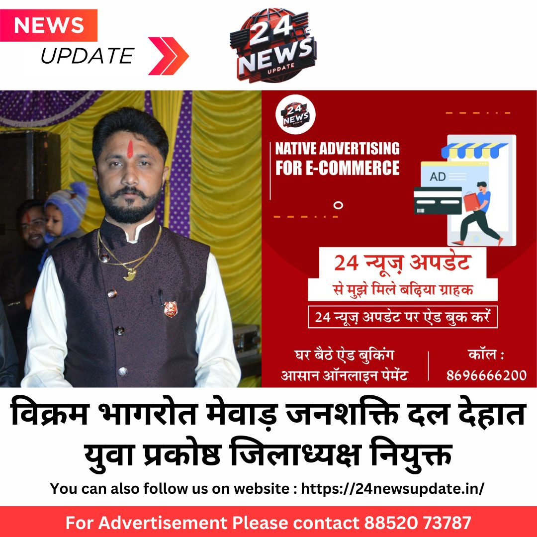 24 न्यूज़ अपडेट उदयपुर। मेवाड़ जनशक्ति दल के संस्थापक नरेश कुमार शर्मा की अनुशंसा पर संरक्षक कपिल पालीवाल के निर्देश से जिला अध्यक्ष देवेंद्र बोयल ने कार्यकारिणी का विस्तार करते हुए 2024, 25 में पूर्व में दायित्व पर और वर्तमान में नई नियुक्तियों के साथ में देहात जिला युवा प्रकोष्ठ में विक्रम सिंह भागरोत को जिला अध्यक्ष नियुक्त किया यह जानकारी संभाग संगठन मंत्री ऋतिक चौबीसा ने दी।