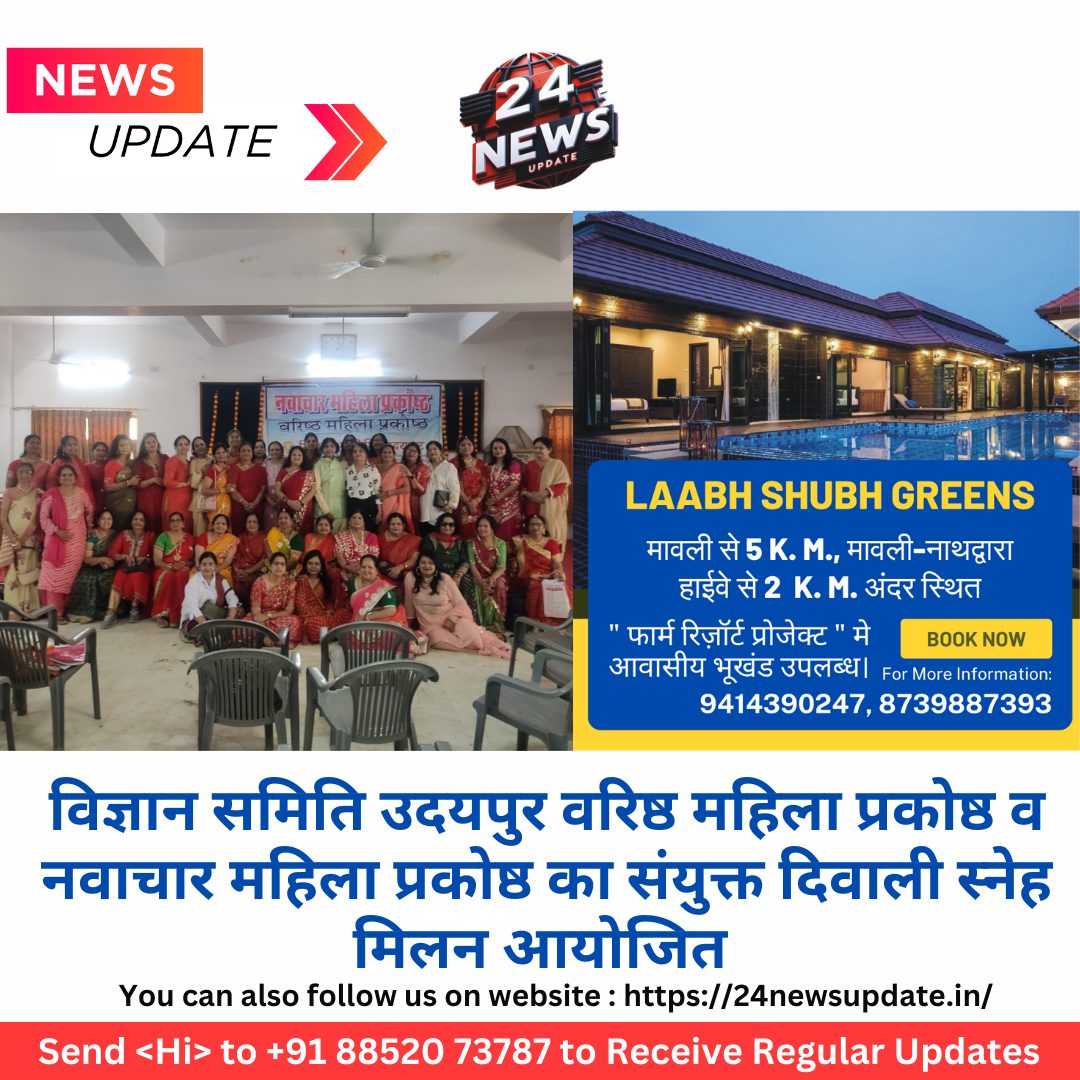 24 न्यूज़ अपडेट उदयपुर. विज्ञान समिति वरिष्ठ महिला प्रकोष्ठ व नवाचार महिला प्रकोष्ठ ने आज संयुक्त रुप से अपना दिवाली स्नेह मिलन सांस्कृतिक कार्यक्रम मनाया। विज्ञान समिति सभागार मे आयोजित इस कार्यक्रम मे राजस्थानी, पंजाबी व फिल्मी गानों पर एकल, युगल व सामुहिक बीस प्रस्तुतियों का उपस्थित 125 सदस्याओं ने खूब आनंद लिया । मीडिया प्रभारी प्रोफेसर विमल शर्मा ने बताया कि कार्यक्रम की शुरुआत विज्ञान समिति कुलगीत – “प्रथम वंदना धरती मां की ” से हुई । नवाचार महिला प्रकोष्ट की अध्यक्षा संगीता भाणावत व वरिष्ठ महिला प्रकोष्ठ की कंचन सोनी ने सभी का स्वागत किया । संरक्षिका पुष्पा जी कोठारी ने आशीर्वचन देते हुए आगामी माह वार्षिकोत्सव का थीम “अवतार” रखने की घोषणा की व सभी से उस अनुरुप तैयारी करने का आग्रह किया। कार्यक्रम को सफल बनाने मैं मुख्य सहयोग विजय लक्ष्मी गलुण्डिया, आभा झवर, कविता ख़िमावत, आशा कोठारी, मंजुला शर्मा, चद्रकला मेहता , उषा गुप्ता, मंजू सरुपरीया, बीना , विमला धाकड़, रेणु खमेसरा, इंद्रा जैन का रहा । समारोह मे विशेष आमंत्रित विज्ञान समिति पुरुषों की ओर से मीडिया प्रभारी प्रोफेसर विमल शर्मा ने आयोजकों का आभार व्यक्त करते हुए सभी महिलाओं को सुंदर प्रस्तुतयों के लिये धन्यवाद दिया । उन्होंने कहा कि नृत्यों के दौरान बज रही तालियां व वंस मोर वंस मोर का शोर स्वयं ही उत्कृष्ट प्रस्तुति के परिचायक बने है। सांस्कृतिक कार्यक्रम के पश्चात सभी ने सुरुचि भोज लिया।