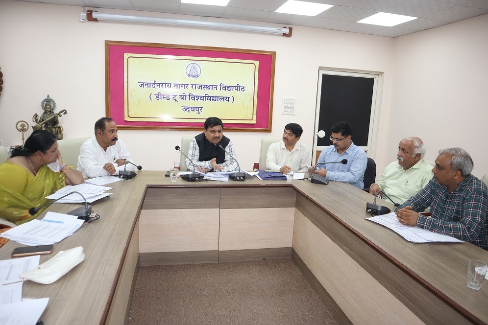 24 न्यूज़ अपडेट उदयपुर. 12 जून / जनार्दनराय नागर राजस्थान विद्यापीठ डीम्ड टू बी विश्वविद्यालय में आगामी दिनों में नेक की विजिट को देखते हुए बुधवार को प्रतापनगर स्थित कुलपति सचिवालय के सभागार में कुलपति प्रो. एस.एस. सारंगदेवोत की अध्यक्षता में हुई बैठक में विद्यापीठ के तीनों परिसरों के डीन, डायरेक्ट एवं विभागाध्यक्षों ने हिस्सा लिया। प्रो. सारंगदेवोत ने कहा कि विश्वविद्यालय द्वारा पिछले पांच वर्षो में शिक्षा के साथ साथ सामाजिक सरोकारों के प्रति अपना दायित्व निभाते हुए अनेक कार्य किए है आवश्यकता है उन्हें नेक की गाईड लाईन के अनुसार विभाग द्वारा किये गये कार्यो को तैयार करना है। इस कार्य के लिए विभिन्न कमेटियों का गठन भी किया गया है। आवश्यक दस्तावेज तैयार करने के दिशा निर्देश दिये गये।
