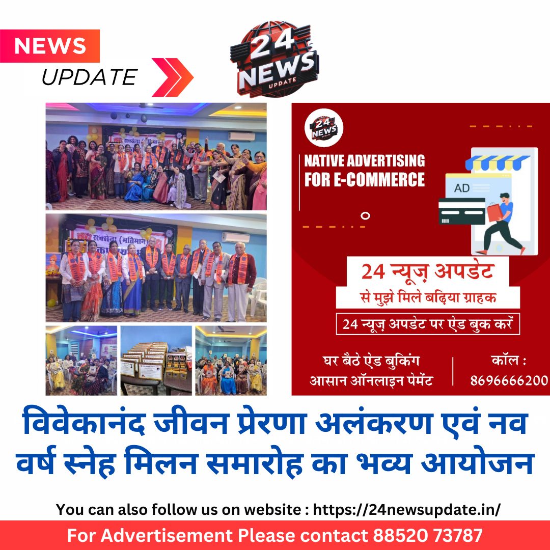 24 न्यूज़ अपडेट उदयपुर: मातेश्वरी रेस्टोरेंट हॉल, सेक्टर 4 में आयोजित विवेकानंद जीवन प्रेरणा अलंकरण एवं नव वर्ष स्नेह मिलन समारोह का आयोजन समाज के वरिष्ठ नागरिकों के सम्मान में हुआ। इस कार्यक्रम में समाज के विभिन्न सदस्य और गणमान्य लोग उपस्थित हुए, जिन्होंने इस आयोजन को सफल बनाने में अपनी सक्रिय सहभागिता दी।