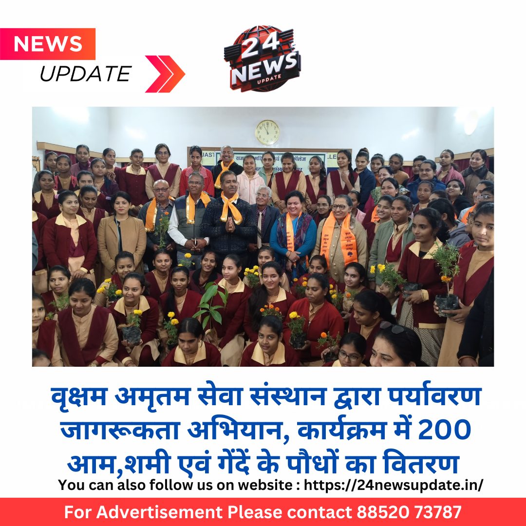 24 न्यूज़ अपडेट उदयपुर। वृक्षम अमृतम सेवा संस्थान और राजस्थान महिला टीचर्स ट्रेंनिंग कॉलेज के संयुक्त तत्वाधान में पौधे वितरण कार्यक्रम रखा गया। प्राचार्या डॉ. प्रभा वाजपेयी ने बताया कि कार्यक्रम में बीएड व एमएड में अध्यनरत छात्राओं , पूर्व -छात्र संघ परिषद एवं स॑काय सदस्यों को पौधों का वितरण किया गया। कार्यक्रम के तहत 200 आम, शमी एवं गेंदे के पौधों का वितरण किए गए। वृक्षम के सचिव यशवंत त्रिवेदी, एक्जीक्यूटिव सदस्य लवीश चपलोत, शिव शंकर पालीवाल और महेश उपाध्याय उपस्थित रहे l