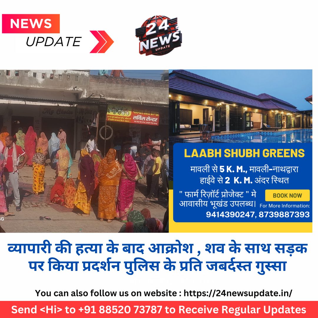 24 न्यूज अपडेट. उदयपुर। उदयपुर के नाई थाना इलाके में दो दिन पहले किराना व्यापारी की हत्या के मामले में आज ग्रामीणों ने नया खेड़ा रोड पर जोरदार प्रदर्शन किया। लोगों ने शव को जमीन पर रखकर प्रदर्शन किया व आरोपियों को जल्द पकड़ने व पुलिस की इस मामले में बरती गई ढिलाई के प्रति जमकर नारजगी जताई। थानाधिकारी नरपत सिंह ने ग्रामीणों से समझाइश की। यह प्रदर्शन करीब 4 घंटे तक चला। आखिरकार शव का अंतिम संस्कार के लिए ले जाया गया। पुलिस के अनुसार 75 साल के व्यापारी पन्नालाल पूर्बिया नया खेड़ा में किराणे की दुकान चलाते हैं। 26 अक्टूबर रात को करीब 9 बजे अज्ञात हमलावरों ने लूट की नीयत से उन पर धारदार हथियार से हमला कर दिया था, जिससे उनकी मौत हो गई थी। उनके भतीजे राजेश पूर्बिया ने पुलिस में मामला दर्ज करवाया व कहा कि पन्नालाल पूर्बिया कई सालों से किराना की दुकान चला रहे थे। हमलावरों ने उनके सिर और चेहरे पर वार करते हुए हत्या कर दी। उनकी किसी से कोई रंजिश नहीं थी। हत्या किसने और किस वजह से की इसके बारे में पुलिस अनुसंधान किया जा रहा है। Share this: Share on X (Opens in new window) X Share on Facebook (Opens in new window) Facebook More Email a link to a friend (Opens in new window) Email Share on WhatsApp (Opens in new window) WhatsApp Like this:Like Loading... Related Discover more from 24 News Update Subscribe to get the latest posts sent to your email. Type your email… Subscribe Post navigation बच्चों ने बनाई पेंटिंग, प्रदर्शनी में कलाकृति देख भाव-विभोर हुए शहरवासी, शहर के शोभागपुरा 100 फीट रोड स्थित मंगल कलश गार्डन में अनूठी कला प्रदर्शनी का आयोजन ओसवाल युवक परिषद् का शपथ ग्रहण समारोह 3 कोशहर में आयोजित होगी भव्य नाकोडा भैरव भजन संध्या