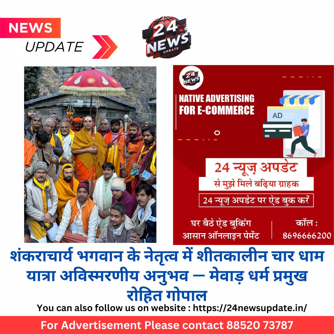 24 न्यूज़ अपडेट उदयपुर. श्री शंकराचार्य ज्योतिष्पीठाधीश्वर स्वामी 1008 श्री श्री अविमुक्तेश्वरानंद जी महाराज के नेतृत्व में उत्तराखंड में शीतकालीन चार धाम यात्रा का आयोजन हुआ। 16 से 23 दिसंबर तक हुई इस यात्रा में उदयपुर, चित्तौड़, गुजरात, मध्यप्रदेश, हरियाणा एवं दिल्ली के सैंकड़ों भक्तों ने हिस्सा लिया। यात्रा के विषय में बताते हुए मेवाड़ धर्म प्रमुख एवं चित्तौड़गढ़ धर्मांसद अधिकारी श्री श्री रोहित गोपाल सूत जी महाराज ने बताया कि इस यात्रा के दौरान शंकराचार्य भगवान के दर्शन और सत्संग ने उन्हें एवं यात्रा में शामिल भक्तों को जीवन के गहरे सत्य का बोध कराया।