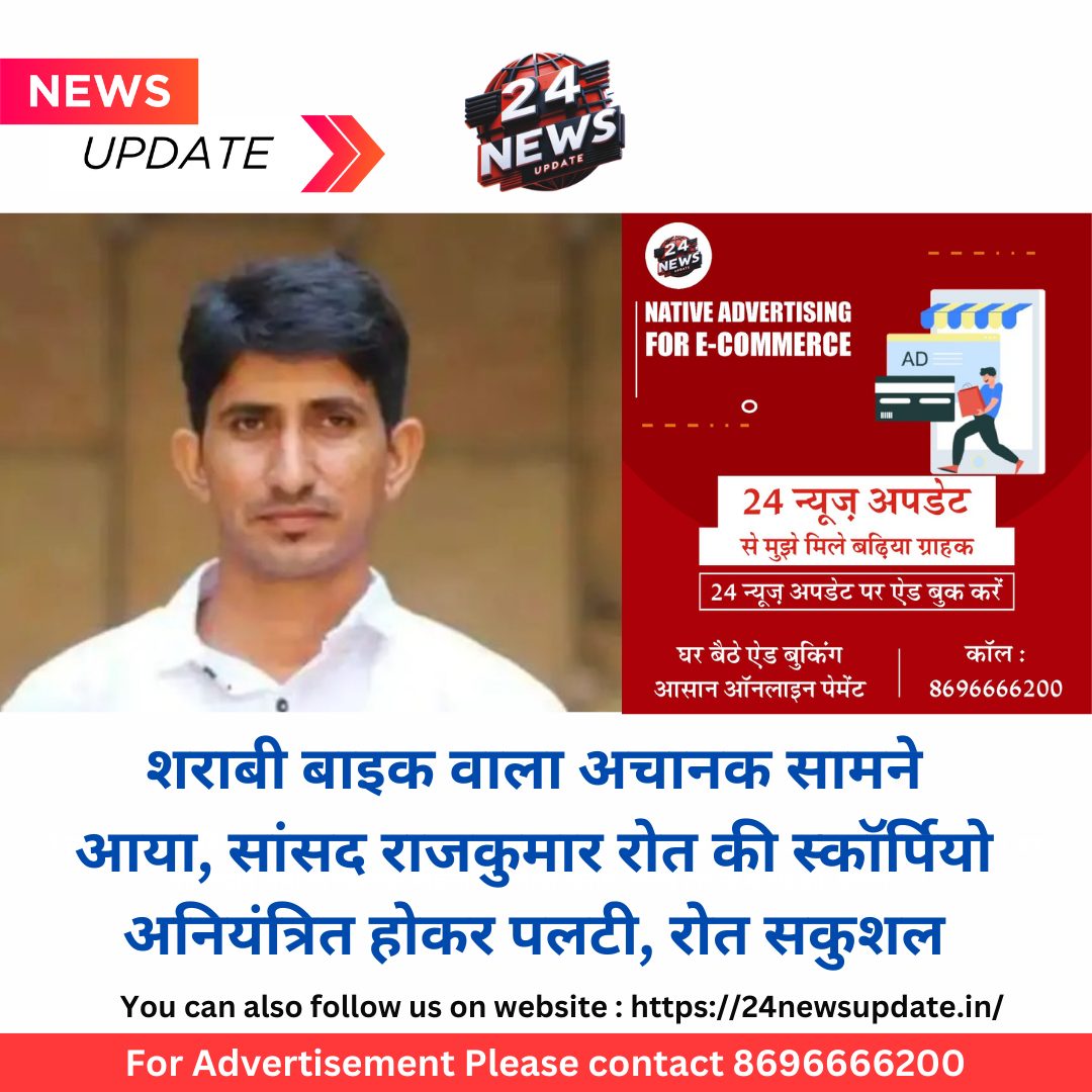 24 न्यूज अपडेट उदयपुर। बांसवाड़ा डूंगरपुर से लोकसभा सांसद राजकुमार रोत की स्कॉर्पियो अनियंत्रित होकर पलट गई। सांसद राजकुमार रोत की स्कॉर्पियो रोड के किनारे गड्ढे में गिरी। मिली जानकारी के अनुसार बाइक सवार को बचाने के चक्कर में हुआ यह हादसा, इस हादसे में बाइक सवार को आई हल्की चोट तुरंत उसे करवाया गया अस्पताल में भर्तीं। वही जब यह एक्सीडेंट हुआ उस वक्त गाड़ी में सवार थे सांसद राजकुमार रोत, उन्हें भी रतलाम अस्पताल ले जाया गया। मध्य प्रदेश के झाबुआ से वापस आते समय हुआ हादसा। मौके पर स्थानीय पुलिस पहुंची। हादसे के समय गाड़ी में सवार थे सांसद, नहीं हुई कोई जनहानि नहीं हुई। इस बारे में राजकुमार रोत ने कहा कि उनको रतलाम में रेलगाड़ी से जाना था। बाइक सवार को रोत खुद रतलाम लेकर आए वह शराब पिया हुआ था। बाइक सवार सामने से लहराते हुए आ रहा था। ड्राइवर ने सजगता रखते हुए गाड़ी को साइड में उतार दिया।