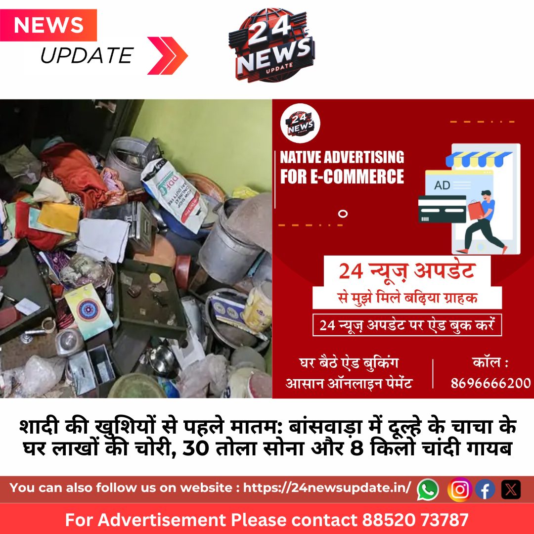 24 न्यूज अपडेट, बांसवाड़ा: बांसवाड़ा जिले के घाटोल कस्बे की गांधी बस्ती में उस समय मातम छा गया, जब एक परिवार भतीजे की शादी की तैयारियों में जुटा था और उनके घर पर लाखों रुपये की चोरी हो गई। चोरों ने बीती रात महिपाल सेठ और जीतमल सेठ के सूने मकान को निशाना बनाया, जहां 25 अप्रैल को शादी होनी है।