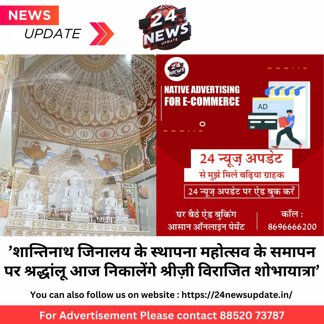24 न्यूज़ अपडेट निम्बाहेड़ा। सकल दिगम्बर जैन समाज के तत्वावधान मे श्रीशान्तिनाथ दिगम्बर जैन मन्दिर के प्रथम स्थापना त्रिदिवसीय महोत्सव के दूसरे दिन आज शान्तिनाथ जिनालय मे श्रद्धांलुओं ने श्री शान्तिनाथ विधान पूजा सम्पन्न की ।