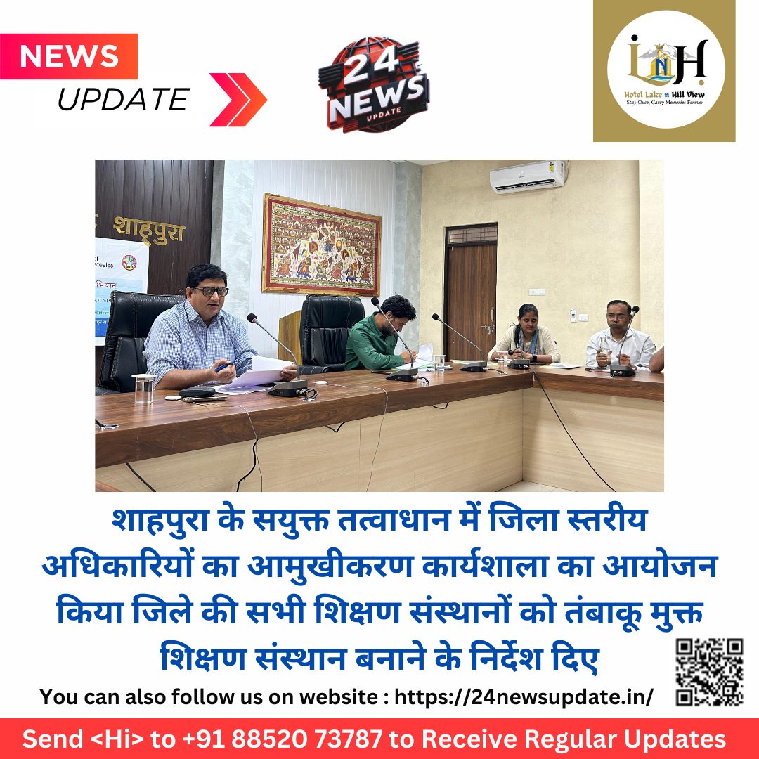 24 न्यूज़ अपडेट शाहपुरा. जिले को तंबाकू मुक्त बनाने के उद्देश्य से मंगलवार को जिला कलेक्ट्रेट सभागार में शिक्षित रोजगार केंद्र प्रबंधक समिति एव जिला प्रशासन शाहपुरा के सयुक्त तत्वाधान में जिला स्तरीय अधिकारियों का आमुखीकरण कार्यशाला का आयोजन किया गया जिसमे जिला कलेक्टर राजेंद्र सिंह शेखावत ने जिला स्तरीय अधिकारियों को तंबाकू मुक्त राजस्थान अभियान के तहत जिले में कोटपा 2003 कानून का प्रभावी क्रियान्वयन करने और जिले की सभी शिक्षण संस्थानों को तंबाकू मुक्त शिक्षण संस्थान बनाने के निर्देश दिए।