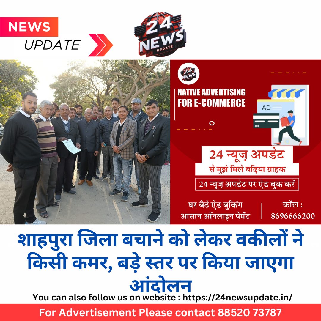 2 दिन न्यायायिक कार्यो का करेंगे बहिष्कार 24 न्यूज़ अपडेट शाहपुरा। शाहपुरा जिला टूटने पर जिले को बचाने और इसके अस्तित्व की रक्षा के लिए वकीलों ने कमर कस ली है। शाहपुरा अभिभाषक संस्था ने गुरूवार को एक महत्वपूर्ण बैठक में सर्वसम्मति से आंदोलन शुरू करने का फैसला लिया। यह कदम उस प्रस्ताव के विरोध में उठाया गया है, जिसमें जिले को राजस्थान सरकार ने खत्म कर दिया हैं। शाहपुरा अभिभाषक संस्था के अध्यक्ष दुर्गालाला राजोरा ने कहा, “जिला हमारी सांस्कृतिक और ऐतिहासिक धरोहर है। इसे खत्म करना न केवल यहां के नागरिकों के अधिकारों का हनन होगा, बल्कि स्थानीय विकास पर भी गहरा असर पड़ेगा।”संस्था सह सचिव कमलेश मुंडेतिया ने गुरूवार को अदालत परिसर में विरोध प्रदर्शन किया और सरकार से मांग की कि जिले को संरक्षित रखा जाए। शाहपुरा अभिभाषक संस्था ने चेतावनी दी है कि यदि उनकी मांगों को नहीं माना गया, तो वे बड़े स्तर पर प्रदर्शन करेंगे और शाहपुरा जिले के नागरिकों व संस्थाओ को भी इस आंदोलन में शामिल करेंगे।दो दिन करेंगे न्यायायिक कार्यो का बहिष्कार:शाहपुरा अभिभाषक संस्था ने घोषणा की है कि 3 व 4 जनवरी को न्यायीयक कार्य का बहिष्कार कर जिले कि बड़ी बैठक आयोजीत कि जायेंगी। बैठक में जिले के अन्य अ अग्रिम संगठनो और सामाजिक कार्यकर्ताओं के शामिल किया जायेगा।विभिन्न संगठनों का लेंगे समर्थन: संस्थाआंदोलन को विभिन्न संगठनों और राजनीतिक दलों का भी समर्थन जुटाएंगे। इसके लिये इसको जनचेतना अभियान कि तरह कार्य किया जायेगा। स्थानीय व्यापार मंडल, किसान संगठन और छात्र संघ को भी इस मुद्दे पर वकील साथ लेकर चलेगें। राजस्थान उच्च न्यायालय में रिट के लिये भी आवश्यक दस्तावेज जुटाने कि तैयारी कि जायेंगी।सरकार से की जाएगी अपीलअधिवक्ताओं ने सरकार से अपील की है कि वे जिले के खत्म करने के निर्णय पर पुनर्विचार करें। उन्होंने कहा कि यदि सरकार उनकी मांगों को नजरअंदाज करती है, तो वकील उग्र आंदोलन के लिए बाध्य होंगे तथा उच्च न्यायालय का दरवाजा खट खटाया जाएगा। जिला बचाओ आंदोलन धीरे-धीरे एक जन आंदोलन का रूप स्थापीत करने का आगाज किया।बैठक का संचालन कोषाध्यक्ष तेजप्रकाश पाठक ने किया व वरिष्ठ अधिवक्ता त्रिलोकचन्द नौलखा,अनील शर्मा ,संजय हाडा ,कन्हैयालाल धाकड,हितेष शर्मा,अंकीत शर्मा,लालाराम गुर्जर, प्रियेश यादव,गणपत बंजारा ,राहुल पारीक,सोहेल खान,आशीष भारद्वावज,कैलाश धाकड, उपाध्यक्ष गजेन्र्द सिंह ,सहसचिव कमलेश मुण्डैतिया ने रखें। Share this: Share on X (Opens in new window) X Share on Facebook (Opens in new window) Facebook More Email a link to a friend (Opens in new window) Email Share on WhatsApp (Opens in new window) WhatsApp Like this:Like Loading... Related Discover more from 24 News Update Subscribe to get the latest posts sent to your email. Type your email… Subscribe Post navigation कॅरियर न्यूज : गेस्ट फेकल्टी में आवेदन करने की अंतिम 