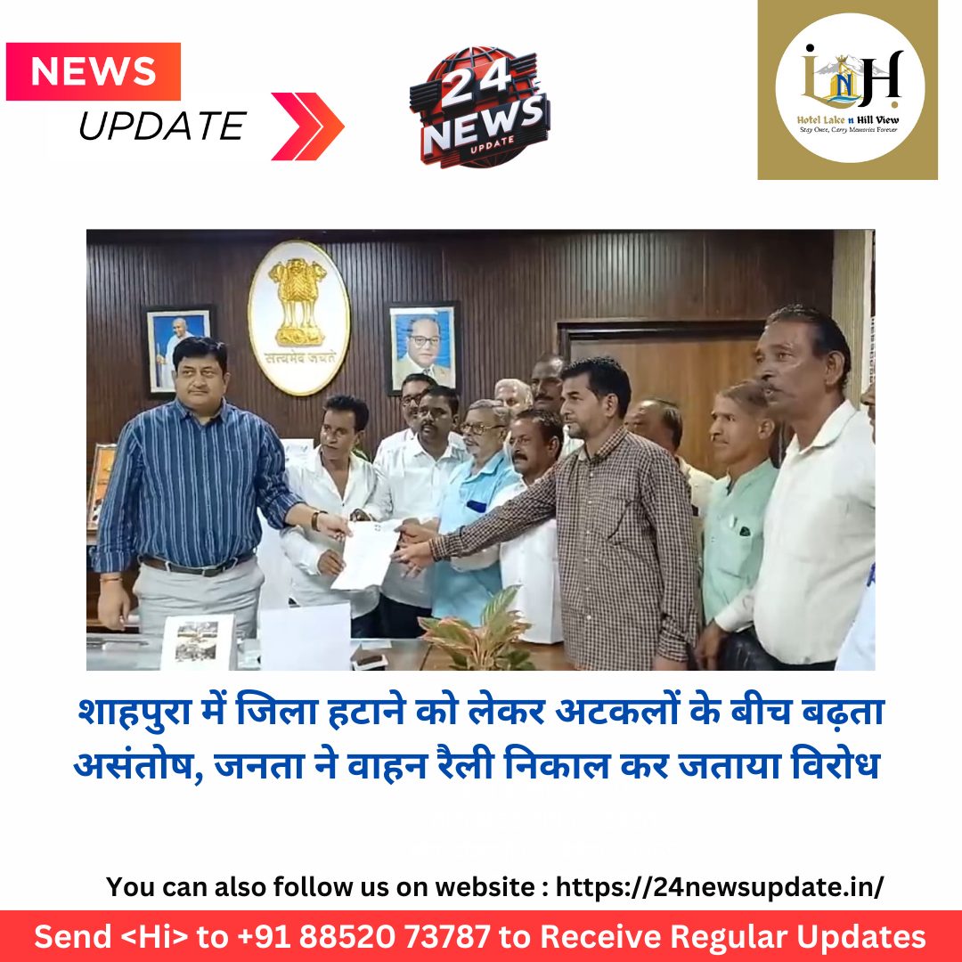 24 न्यूज़ अपडेट शाहपुरा. राजस्थान के पूर्व मुख्यमंत्री अशोक गहलोत ने शाहपुरा को जिला बनाकर ऐतिहासिक सौगात देकर उसको शुरू करनें का काम किया जिसको वर्तमान भजनलाल सरकार द्वारा शाहपुरा जिला षड्यंत्र पूर्वक हटाने का प्रयास किया जा रहा है वर्तमान सरकार जिस तरह जनता के हित की ना सोचकर उनके खिलाफ़ फैसले कर रही हैं वे सरासर ग़लत हैं जनता ने कहा की पिछली सरकार ने जितने भी जिले बनाएं वह आने वाले भविष्य को मजबूती मिलेगी नहीं बल्कि रोजगार,सड़क मार्गों, रेल मार्ग,आर्थिक स्थिति, शिक्षा, चिकित्सा सुविधा उपलब्ध को बढ़ावा मिलेगा पिछली सरकार जिले बनाने के फैसले को जनता ने सर्वोप्रिय माना