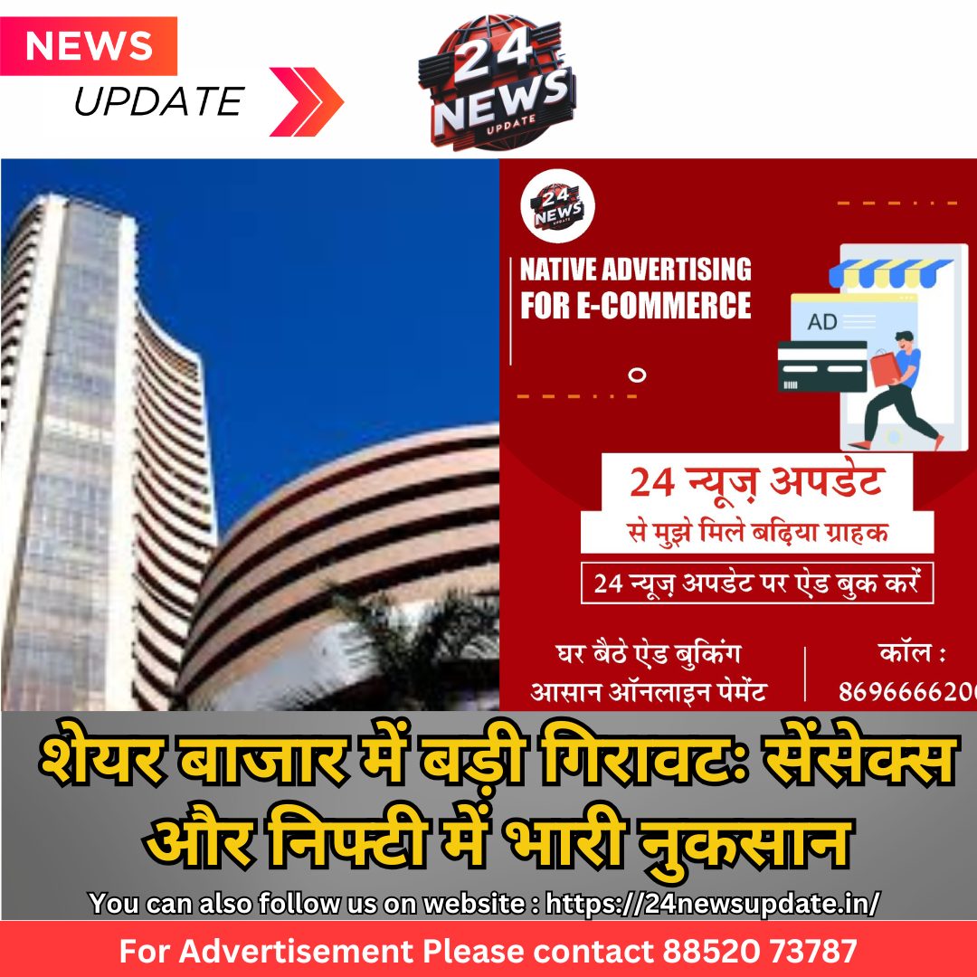 24 न्यूज अपडेट बिजनेस रिपोर्टर। सेंसेक्स और निफ्टी की स्थिति में आज 21 जनवरी को भारतीय शेयर बाजार में भारी गिरावट देखी गई। सेंसेक्सः 1,200 अंकों की गिरावट के साथ 75,800 के स्तर पर कारोबार कर रहा है। निफ्टीः 300 अंकों की गिरावट के साथ 23,000 के स्तर पर कारोबार कर रहा है। प्रमुख क्षेत्रों में बैंकिंग, ऑटो, और मेटल सेक्टर के शेयरों में सबसे अधिक गिरावट रही।