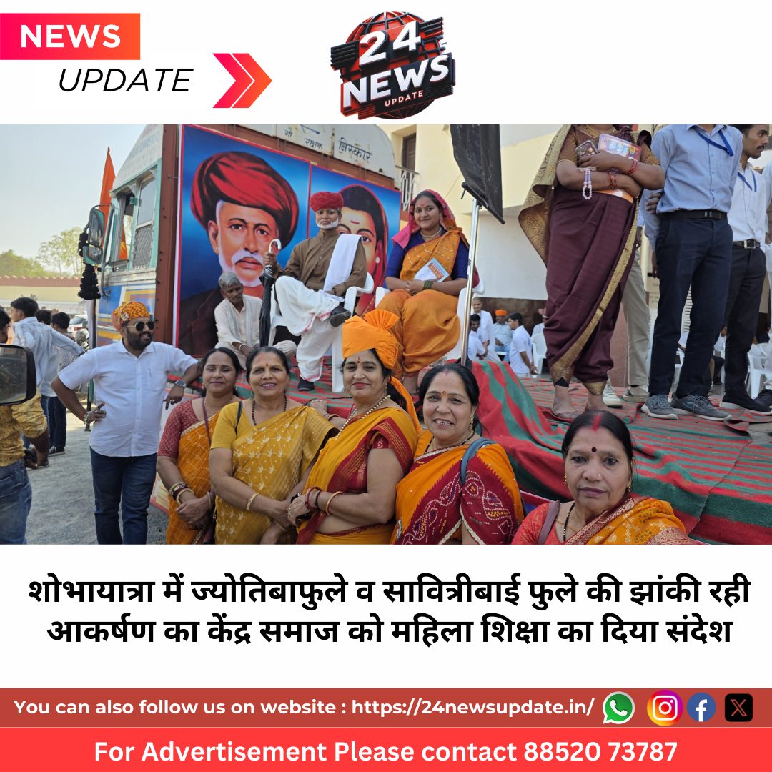 24 News Update Udaipur. नव वर्ष के अवसर पर उदयपुर की शोभा यात्रा रैली में ज्योतिबा फुले टीटी कॉलेज व सेंट ज्योतिबा फुले उच्च माध्यमिक विद्यालय द्वारा अनपढ़ व महिला शिक्षा पर आधारित विशेष झांकी बनाई गई। जिसमें ज्योतिबाफुले व सावित्रीबाई फुले महिला शिक्षा को प्रोत्साहित करने के लिए सजीव चित्रण किया गया। शोभायात्रा में ज्योतिबा के संदेश के साथ चली ।जिससे उदयपुर नगर वासियों ने काफी प्रशंसा की। झांकी में ज्योतिबा फुले के समाज संदेश के साथ-साथ उन्होंने शिक्षा के क्षेत्र में किए गए कार्य में दर्शाया गया। ज्योतिबा फुले व सावित्रीबाई फुले का ज्योतिबा फुले टीटी कॉलेज के छात्रों ने ज्योतिबा फुले और सावित्रीबाई फुले बनकर अनपढ़ व महिला शिक्षाओं को पढ़ाते हुए जोरदार तरीके से प्रदर्शित किया। सभी झांकी को निर्देशक दिवाकर माली, भारत माली, डॉ मनीष शर्मा ,डॉ मनीष सक्सेना व समस्त स्कूलों व महाविद्यालय के स्टाफ व छात्रों ने तैयार की और एक समाज में नया संदेश दिया गया। इस अवसर पर ज्योतिबा फुले का एक लघु कथा का ऑडियो द्वारा भी सुनाया गया। घर घर में संदेश दिया गया । नरेश पूर्बिया ने बताया कि इस झांकी की प्रेरणा सर्व ओबीसी समाज महापंचायत ट्रस्ट के संस्थापक दिनेश माली द्वारा दी गई।