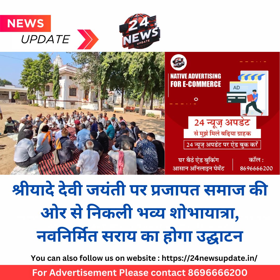 24 न्यूज़ अपडेट उदयपुर। ग्राम पंचायत दरौली स्थित श्रीयादे देवी मंदिर परिसर में मेवलिया प्रजापति समाज मेवाड चौखला की बैठक आयोजित हुई। बैठक के मुख्य अतिथि पूर्व अध्यक्ष देवीलाल प्रजापत सराय थे वहीं अध्यक्षता गणेश लाल प्रजापत घासा ने की। मेवाड चौखले के मीडिया प्रभारी भगवान प्रजापत ने बताया कि बैठक में विभिन्न मुद्दों पर चर्चा की गई। चौखला अध्यक्ष गणेशलाल प्रजापत ने बताया कि समाज की ओर नवनिर्मित सराय का उद्घाटन 31 जनवरी को होगा। उद्घाटन की पूर्व संध्या पर सत्यनारायण कथा व भजन संध्या का आयोजन किया जाएगा। इसके बाद 31 जनवरी को श्रीयादे देवी जयंती धूमधाम से मनाई जाएगी। इस मौके पर श्रीयादे देवी जयंती पर भव्य शोभायात्रा निकाली जाएगी और नवनिर्मित सराय का उद्घाटन किया जाएगा। इस मौके पर समाज के भामाशाहों का सम्मान किया जाएगा। संयुक्त महामंत्री डी सी प्रजापत बिठोली ने बताया कि मेवाड़ चौखले की टेलिफोन डायरेक्ट्री का जयंती महोत्सव पर होने वाले कार्यक्रम में विमोचन किया जाएगा। कोषाध्यक्ष रामलाल प्रजापत दरौली ने बताया कि बैठक में वागड मेवाड प्रजापति समाज संस्थान का जिला सम्मेलन मार्च या अप्रैल माह में आयोजित करने पर चर्चा की गई। सह सचिव कालू प्रजापत ने बताया कि बैठक में मंदिर परिसर में सीसी रोड बनाने सहित अन्य विकास कार्यों पर विचार विमर्श किया गया। बैठक के पश्चात स्नेहभोज का आयोजन भामाशाह विजय प्रजापत सराय की ओर से किया गया। बैठक में दलाजी इंटाली, शिवराम सराय, अंबालाल नवानिया, उदयलाल खेड़ी, मांगीलाल इंटाली, धनराज सराय, रूपलाल ढावा, दीपलाल घासा, पन्नालाल भटेवर, लोगरलाल दरौली, गेहरी लाल, केसुलाल सहित समाज के कई प्रबुद्धजन उपस्थित थे