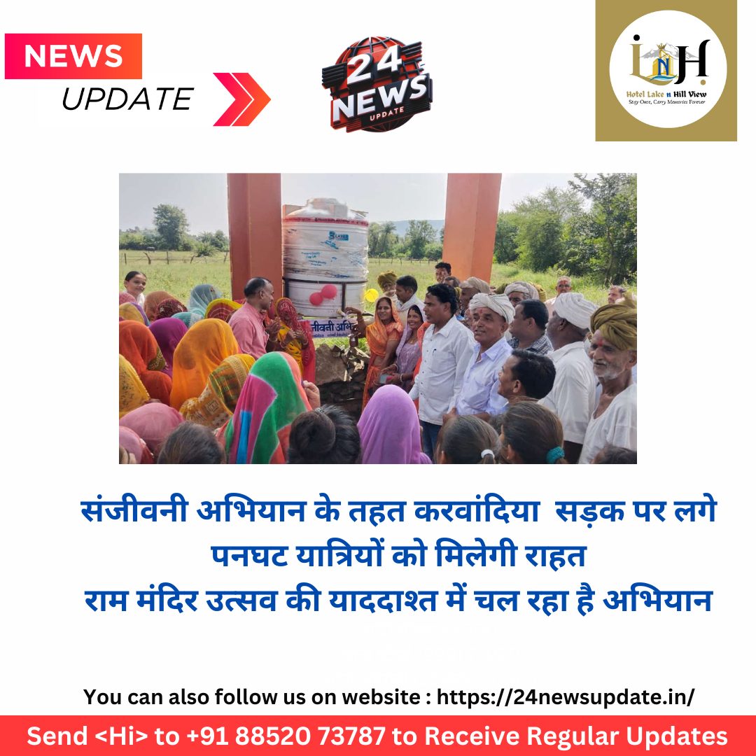 24 न्यूज़ अपडेट सलूंबर. सलूंबर जिले के मेवल क्षेत्र के अदवास गांव में राम मंदिर उत्सव उथरदा खंड की याददाश्त में सघन पौधारोपण संजीवनी अभियान के नाम से चलाया जा रहा है ।जिसमें रविवार को सड़कों पर पनघट का निर्माण किया गया और उसका उद्घाटन भाजपा महिला मोर्चा जिला अध्यक्ष रितु अग्रवाल जिला मंत्री गीता देवी मीणा के द्वारा किया गया ।अब इस मार्ग से मंदिर परिसर तक पहुंचने वाले यात्रियों को पेयजल की सुविधा मिलकर राहत मिलेगी। अभियान के संयोजक मनोज चौबीसा सहसंयोजक पारस जैन ,शांतिलाल शर्मा ,भीम सिंह, केसर सिंह ललित सुथार ,पर्वत सिंह ने बताया कि हिंगलास दरवाजे से लेकर करवांदिया भेरुजी तक तीन किलोमीटर की दूरी है इस पर जाने वाले राहगीरों के लिए कहीं भी पर जल की व्यवस्था नहीं थी ऐसे में दर्शनार्थियों को समस्या का सामना करना पड़ता था ।संजीवनी अभियान के तहत तरु मित्र सोहन सिंह डाल, गणेश शर्मा रोडदा के द्वारा दो पनघटो का निर्माण करवाया गया है ,और एक और पनघट पद्मावती नवयुक मंडल मुंबई द्वारा बनवाना प्रस्तावित है।जिसके चलते अब राहगीरो पेयजल की सुविधा उपलब्ध होकर राहत मिलेगी। बता दें कि अभियान के तहत 3 किलोमीटर की सड़क पर एलईडी लाइटों से रोशनी की गई है, सड़क के दोनों किनारे टी गार्डन के साथ पौधारोपण किया गया है, पैदल जाने वाले राहगीरों के लिए 14 स्थान पर आश्रय स्थल बनाए हैं ,पैदल जाने पर इन आश्रय स्थलों में राहत लेकर आगे बढ़ सकते हैं, पौधों को सिंचित करने के लिए पाइपलाइन बिछाने का कार्य भी प्रस्तावित है। इस तरह से पर्यावरण संरक्षण को लेकर उक्त अभियान का पूरे क्षेत्र में सराहना की जारी है। अभियान समिति के सदस्यों के आग्रह पर अब क्षेत्र के लोग जन्म दिवस पर इस सड़क पर पौधा लगाकर मानने लगे हैं, रविवार को एलआईसी अभिकर्ता गणेश लाल सुथार द्वारा सड़क मार्ग पर 11 पौधे टी गार्डन के साथ लगाकर अपना जन्म दिवस सैकड़ो लोगों के साथ मनाया।, और अन्य लोगों को भी जन्मदिवस पर पौधे लगाने के लिए प्रेरित किया । Share this: Share on X (Opens in new window) X Share on Facebook (Opens in new window) Facebook More Email a link to a friend (Opens in new window) Email Share on WhatsApp (Opens in new window) WhatsApp Like this:Like Loading... Related Discover more from 24 News Update Subscribe to get the latest posts sent to your email. Type your email… Subscribe Post navigation डी एन सिंह ने पीडब्ल्यूडी विभाग सलूंबर के एक्सईएन का पद संभाला स्वच्छ भारत अभियान को ठेंगा दिखा रहा सराडा तहसील कार्यालय परिसर का बदहाल माहौल