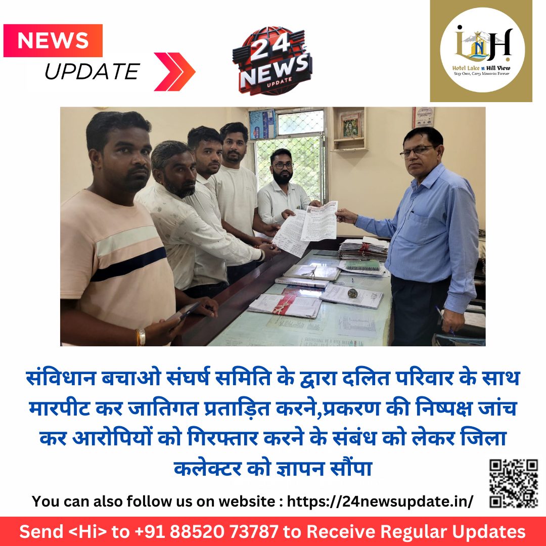 24 न्यूज़ अपडेट भीलवाड़ा. एससी समुदाय के घर तोड़ने, पशुओं को जेसीबी चलाकर मारने, महिलाओं के साथ जानलेवा हमला, मारपीट कर जातिगत प्रताड़ित करने,प्रकरण की निष्पक्ष जांच कर आरोपियों को गिरफ्तार करने के संबंध में ज़िला कलेक्टर को ज्ञापन सौंपा मोतीलाल सिंघानिया ने बताया कि ग्राम गरवाई, गोवर्धनपुरा, पुलिस थाना करेड़ा में रेगर समाज के व्यक्तियों के साथ भूमाफिया, दबंग नाथूलाल गुर्जर व अन्य द्वारा अवैध तरीके से हथियारों से लेस होकर, जेसीबी से मकान को ध्वस्त करना एवं पशुओं को जेसीबी के नीचे दबाकर मारना एवं महिलाओं-पुरुषों के साथ जानलेवा हमला करके मारपीट करना, भूमि हड़पने की कोशिश करना एवं जातिगत प्रताड़ित करके बेघर करना, के खिलाफ त्वरित जांचकर नाथूलाल गुर्जर निवासी ज्ञानगढ़ एवं अन्य को तुरंत गिरफ्तार करने, और करेड़ा थानेदार को लाइन हाजिर किया जाए।आजाद भारत में अमानवीय जानलेवा हमला करके, पशुओं को मारना एवं महिलाओं के साथ धारदार हथियार से हमला करके प्रताड़ित करना एवं थानेदार को लिखित रिपोर्ट देने के बावजूद भी अपराधियों से मिलकर, उनका पक्ष लेते हुए कार्रवाई नहीं करना एवं पीड़ित पक्ष को डरा धमकाकर थाने से भगा देना, जिसकी वजह से भूमाफिया एवं अभियुक्तों के हौसले बुलंद हो गए और पुनः जेसीबी ले जाकर जानलेवा हमला करके, बने हुए मकान एवं कीमती सामान को ध्वस्त करके, मरने लिए मजबूर कर दिया।अनुरोध हैं कि उक्त प्रकरण की जल्दी जांच करके, नाथूलाल गुर्जर एवं उसके गिरोह/गैंग में शामिल समस्त अभियुक्तों को गिरफ्तार कर, गंभीर धारा एफआईआर में जोड़ी जाकर, पीड़ित पक्ष को राहत प्रदान कराई जाए।हम संगठन द्वारा मांग करते है कि उक्त प्रकरण में 5 दिन में कार्रवाई नहीं होने के बावजूद,भीलवाड़ा में उग्र आंदोलन किया जाएगा, जिसकी समस्त जिम्मेदारी ज़िला प्रशासन और पुलिस प्रशासन की होगी।