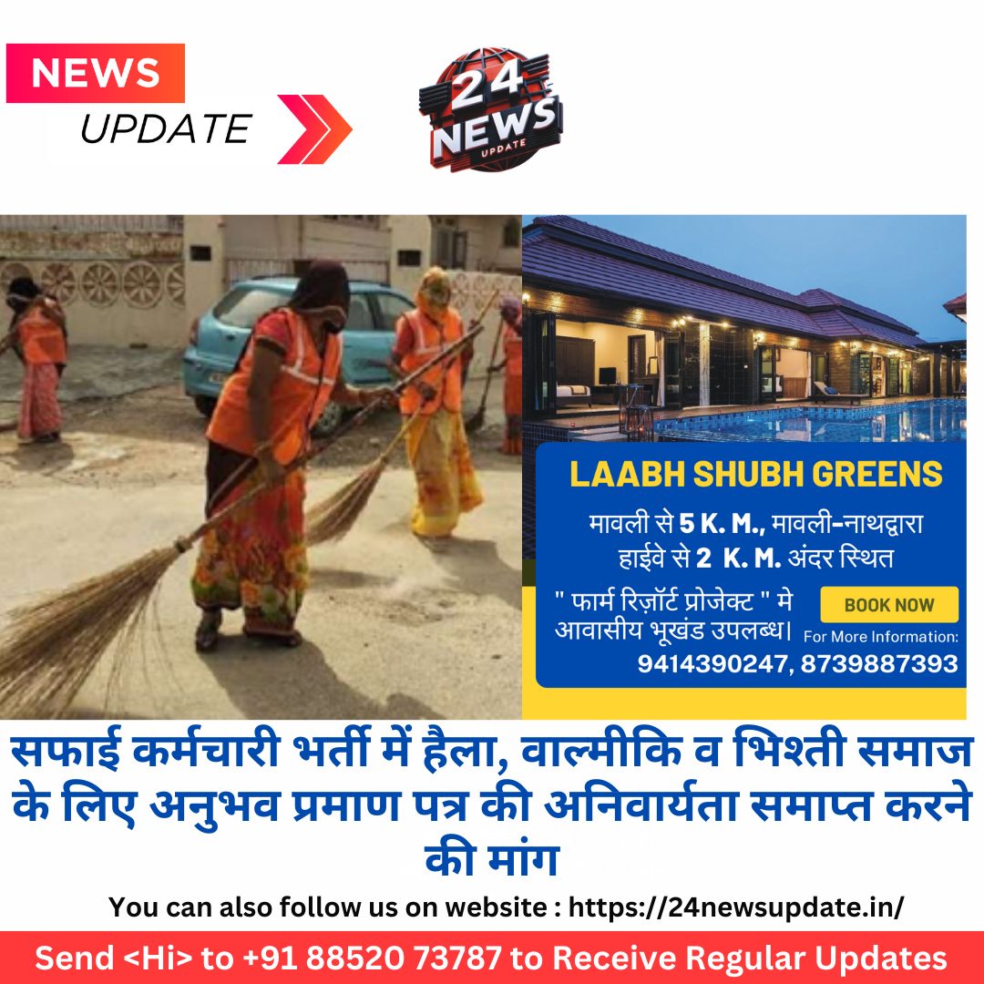 24 न्यूज अपडेट उदयपुर। इंतेजामिया नौजवान कमेटी कांजी का हाटा की ओर से सदर सिद्दिक हुसैन ने मुख्यमंत्री को लिखे पत्र में बताया गया कि वर्तमान में जारी की गई सफाई कर्मचारीयों की भर्ती की विज्ञप्ति में हैला, वाल्मीकि एवं मिश्ती समाज से सफाई कार्य के अनुभव की अनिवार्यता को देखते हुए निवेदन किया गया कि उक्त समाज जो पुश्तैनी रूप से सफाई कार्य करते हुए आये है उनके लिये किसी प्रकार के अनुभव की अनिवार्यता को समाप्त कर हैला, वाल्मिकी एवं मिश्ती समाज को अनुग्रहित करें। तीनों ही समाज जन्मजात व राजा-महाराजा के समय से सफाई कार्य करते आये हैं य सफाई कार्य करने वाली जाति में पैदा हुए है, इन तीनों समाज से सफाई कार्य का अनुभव प्रमाण पत्र मांगना न्यायसंगत नहीं है। भर्ती प्रक्रिया निष्पक्ष एवं पारदर्शी होने के लिये जिला कलक्टर के माध्यम से निष्पादित करने का भी अनुरोध किया गया है। हैला, वाल्मिकी एवं मिश्ती समाज से भर्ती प्रक्रिया में एक-एक प्रतिनिधि को सम्मिलित करने का भी अनुरोध किया गया है जिससे भर्ती प्रक्रिया निष्पक्ष एवं सुचारू रूप से संचालित हो सकें। चूंकि पूर्व में भी समय-समय पर राज्य सरकार के आदेशानुसार हैला, वाल्मीकि एवं मिश्ती समाज को सफाई कर्मचारियों की भर्ती में प्राथमिकता दी जावेगी, ऐसा वर्णित किया गया है। सामाजिक न्याय अधिकारिता विभाग, उदयपुर के अध्याय नंबर 61 में वर्णित हैला, वाल्मिकी एवं मिश्ती समाज द्वारा सफाई का कार्य किया जाता है ऐसा दर्शाया गया है। पुनः निवेदन किया गया कि तीनों ही समाज के अनुभव प्रमाण पत्र की अनिवार्यता को समाप्त कर समाज द्वारा जारी लेटरपेड या जाति प्रमाणपत्र के आधार पर भर्ती प्रक्रिया में शामिल किया जायें।