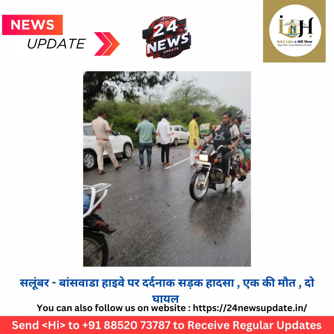 24 न्यूज अपडेट सलूंबर. सलूंबर थाना क्षैत्र के उदयपुर बांसवाडा हाइवे पर आज देर शाम हुए सड़क हादसे में बाइक सवार यूवक की मौत हो गई । जबकी बाईक सवार अन्य दो यूवक गम्भीर घायल हे । जानकारी के अनुसार उदयपुर में CET एग्जाम देकर घर लौट रहे बाइक सवारों और कार में टक्कर हों गई । हादसे में एक युवक की मौके पर ही मौत, दो अन्य गम्भीर रूप से घायलहुए हे । जिन्हे सलूंबर अस्पताल में भर्ती करवाया गया है। बाईक सवार यूवक
