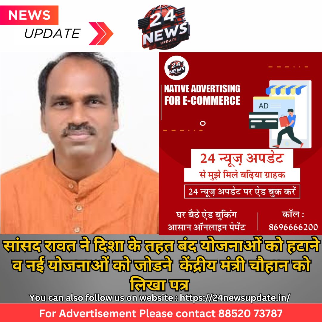 24 न्यूज़ अपडेट उदयपुर। सांसद मन्नालाल रावत ने केन्द्रीय ग्रामीण विकास मंत्री शिवराज सिंह चौहान को पत्र लिखकर जिला विकास समन्वय और निगरानी समिति (दिशा) के अन्तर्गत योजनाओं व कार्यक्रमों की सूची को अपडेट करने का आग्रह किया है। असल में समिति के तहत चल रही कई योजनाएं वर्तमान में बंद हो चुकी है और कई योजनाएं ऐसी हैं जो चल रही है, लेकिन शामिल नहीं है।