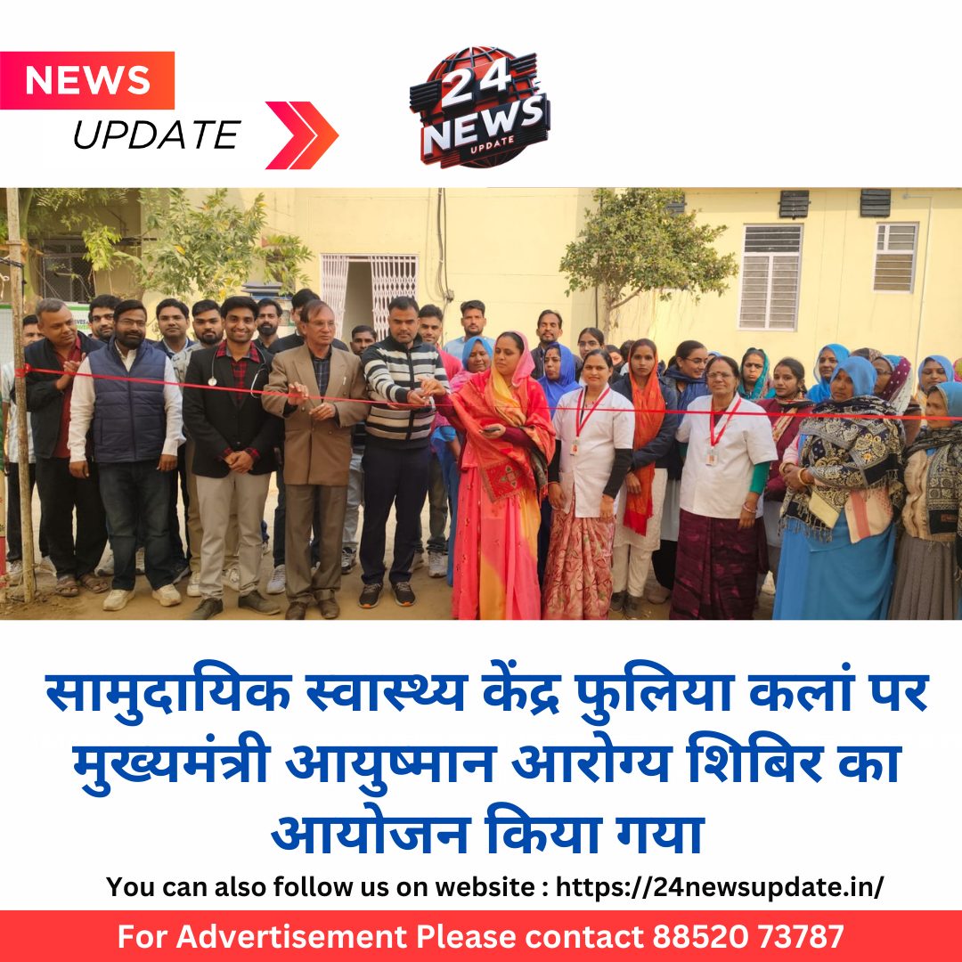 24 न्यूज़ अपडेट शाहपुरा. शाहपुरा जिले के फुलिया कलां उपखंड सामुदायिक स्वास्थ्य केंद्र फुलिया कलां पर मुख्यमंत्री आयुष्मान आरोग्य शिबिर का आयोजन किया गया जिसका उद्घाटन शाहपुरा प्रधान माया देवी जाट द्वारा किया गया I