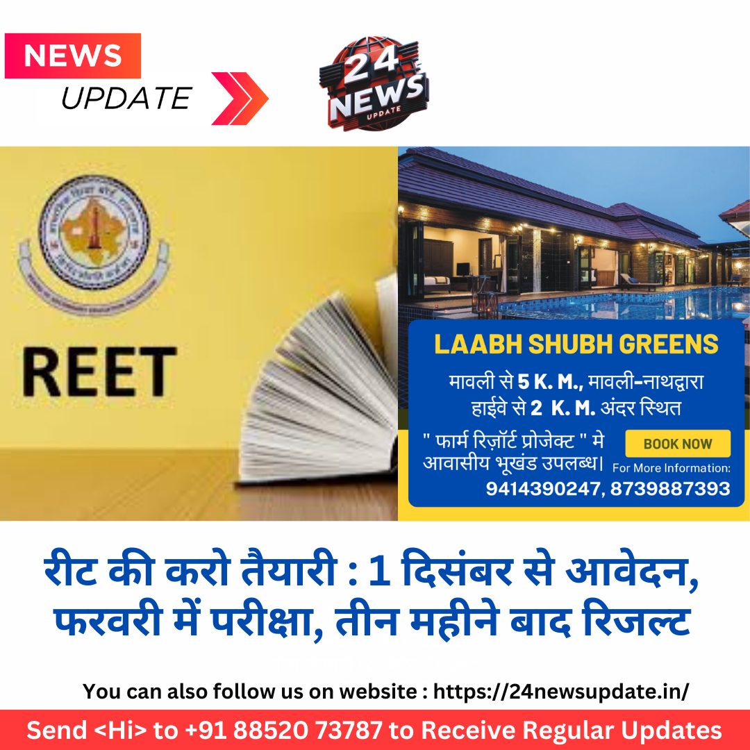 24 न्यूज़ अपडेट उदयपुर। राजस्थान एलिजिबिलिटी एग्जाम फॉर टीचर्स याने की रीट की तारीख आ गई है। 1 दिसंबर से आवेदन शुरू हो जाएंगे व फरवरी में परीक्षा की संभावना है। तीन महीने में रिजल्ट आ जाएगा। इससे पहले साल 2022 में रीट की विज्ञप्ति जारी की गई थी। माध्यमिक शिक्षा बोर्ड अजमेर 25 नवंबर से पहले विज्ञप्ति जारी करेगा। शिक्षा मंत्री मदन दिलावर ने मीडिया से कहा कि प्रदेश के लाखों अभ्यर्थी पिछले लंबे से रीट का इंतजार कर रहे हैं। हमारी सरकार ने भी रीट कराने का वादा किया था। 25 नवंबर से पहले रीट की विज्ञप्ति जारी की जाएगी। 1 दिसंबर से आवेदन की प्रक्रिया भी शुरू होगी। साल 2022 में आयोजित हुई रीट की तरह ही शुल्क वसूला जाएगा, जिसमें पात्र अभ्यर्थी शिक्षक भर्ती परीक्षा में आवेदन कर सकेंगे। दिलावर ने कहा कि फिलहाल शिक्षा विभाग में खाली चल रही पोस्ट के साथ ही टीचर्स की पदोन्नति के बाद पदों की संख्या का रिव्यू किया जा रहा है। जैसे ही यह प्रक्रिया पूरी हो जाएगी। उसके बाद ही पता चल सकेगा कि राजस्थान में टीचर्स के कुल कितने पद फिलहाल खाली है। उसके आधार पर ही शिक्षक भर्ती की जाएगी। शिक्षा विभाग के शासन सचिव कृष्ण कुणाल ने कहा कि इस बार रीट में अभ्यर्थियों को ओएमआर शीट में चार की जगह पांच ऑप्शन दिए जाएंगे। किसी सवाल के जवाब के लिए चार की जगह पांच विकल्प होंगे। ऐसे में अगर कोई अभ्यर्थी चारों विकल्प नहीं भरता है तो उसे पांचवां विकल्प भरना होगा। ऐसा न करने पर नेगेटिव मार्किंग होगी और नंबर कट जाएंगे। इसके साथ ही अगर किसी अभ्यर्थी ने 10 फीसदी से अधिक सवालों के जवाब में पांचों विकल्प में से एक भी नहीं चुना तो उसे अयोग्य घोषित कर दिया जाएगा।