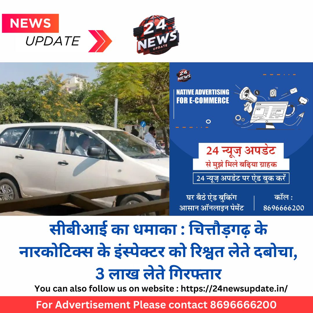 24 न्यूज अपडेट, जयपुर। केंद्रीय जांच ब्यूरो सीबीआई ने आज धमाका किया। चित्तौड़गढ़ के केंद्रीय नारकोटिक्स ब्यूरो के इंस्पेक्टर और बिचौलिए को रिश्वत लेते गिरफ्तार कियां ये लोग एकक क्लिनिक के खिलाफ मामले के निपटारे के लिए 20 लाख रुपए की रिश्वत मांग रहे थें बिचौलिए के माध्यम से रिश्वत के 3 लाख रुपए लेते इंस्पेक्टर को पकड़ा गया। दोनों आरोपियों से अब पूछताछ की जा रही हैं। केंद्रीय जांच ब्यूरो को परिवादी ने शिकायत दी कि चित्तौड़गढ़ के केंद्रीय नारकोटिक्स ब्यूरो के इंस्पेक्टर एक बिचौलिए के मार्फत 3 लाख रुपए की रिश्वत मांग रहे है। रकम आरोपियों की ओर से उनकी क्लिनिक के खिलाफ मामले के निपटारे के लिए मांगी जा रही है। निपटारे के लिए 20 लाख रुपए की रिश्वत की डिमांड की गई थी। उसके बाद आरोपियों की ओर से 8 लाख रुपए की रिश्वत मांग रखी गई। शिकायत पर बुधवार को केंद्रीय नारकोटिक्स ब्यूरो के आरोपी इंस्पेक्टर आदर्श योगी और बिचौलिए केशव के खिलाफ मामला दर्ज किया गया। सीबीआई ने ट्रेप का जाल बिछाया। चित्तौड़गढ़ के इंस्पेक्टर आदर्श योगी की ओर से 3 लाख रुपए की रिश्वत लेते बिचौलिए केशव को रंगे हाथों धर-दबोचा। टीम के चित्तौड़गढ़ और बीकानेर में आरोपी इंस्पेक्टर के घर और ऑफिस की तलाशी ली। टीम ने तलाशी में आपत्तिजनक डॉक्यूमेंट को जब्त किए। Share this: Share on X (Opens in new window) X Share on Facebook (Opens in new window) Facebook More Email a link to a friend (Opens in new window) Email Share on WhatsApp (Opens in new window) WhatsApp Like this:Like Loading... Related Discover more from 24 News Update Subscribe to get the latest posts sent to your email. Type your email… Subscribe Post navigation प्रदेश के 158 निकायों में सड़कें बनायेगा पीडब्लूडी— 180 करोड़ की लागत से 270 किमी. की सड़कें बनेगी फेसबुक लाइव में कहा-सुसाइड कर रहा हूं, पुलिस का कमाल-केवल 11 मिनट में लोकेशन ट्रेस कर दरवाजा तोड़ा और बचा ली युवक की जान