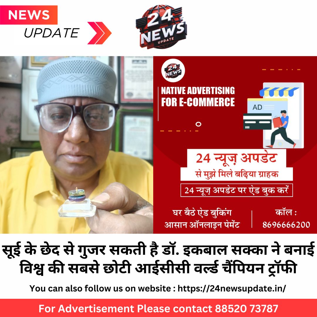24 न्यूज अपडेट. उदयपुर। उदयपुर के सो विश्व रिकॉर्ड होल्डर स्वर्ण शिल्पी डॉक्टर इकबाल सक्का ने 19 फरवरी से दुबई में शुरू होने वाली आईसीसी वनडे चैंपियन वर्ल्ड कप की प्रतियोगिता के लिए लेंस से देखे जाने वाली राई के दाने से भी छोटी सूइ के छेद से निकल जाने वाली आईसीसी वर्ल्ड चैंपियन ट्रॉफी 2025 बनाई । डॉक्टर सक्का ने बताया कि आईसीसी वर्ल्ड चैंपियन में जो भी विजेता टीम होगी उस विजेता टीम को भारतीय क्रिकेट कंट्रोल बोर्ड भारत सरकार द्वारा भेंट करेंगे इसके लिए डॉक्टर सक्का ने देश के प्रधानमंत्री माननीय नरेंद्र मोदी जी को व खेल मंत्रालय एवं भारतीय क्रिकेट कंट्रोल बोर्ड के अध्यक्ष को पत्र लिखकर अवगत कराया है ।डॉक्टर सक्का ने वनडे चैंपियन वर्ल्ड कप को क्रिकेट प्रेमियों के लिए शहर के पर्यटन स्थल दूध तलाई फतेहसागर सहेलियों की बड़ी सुखाड़िया सर्कल इत्यादि स्थानो पर प्रदर्शन किया तो देश विदेश के लोगों ने विश्व की सबसे छोटी राई के दाने से भी छोटी कलाकृति को पसंद किया और यह प्रार्थना की की आईसीसी चैंपियन 2025 ट्रॉफी भारत जीते ताकी यह कलाकृति हमारे देश की शोभा बने।