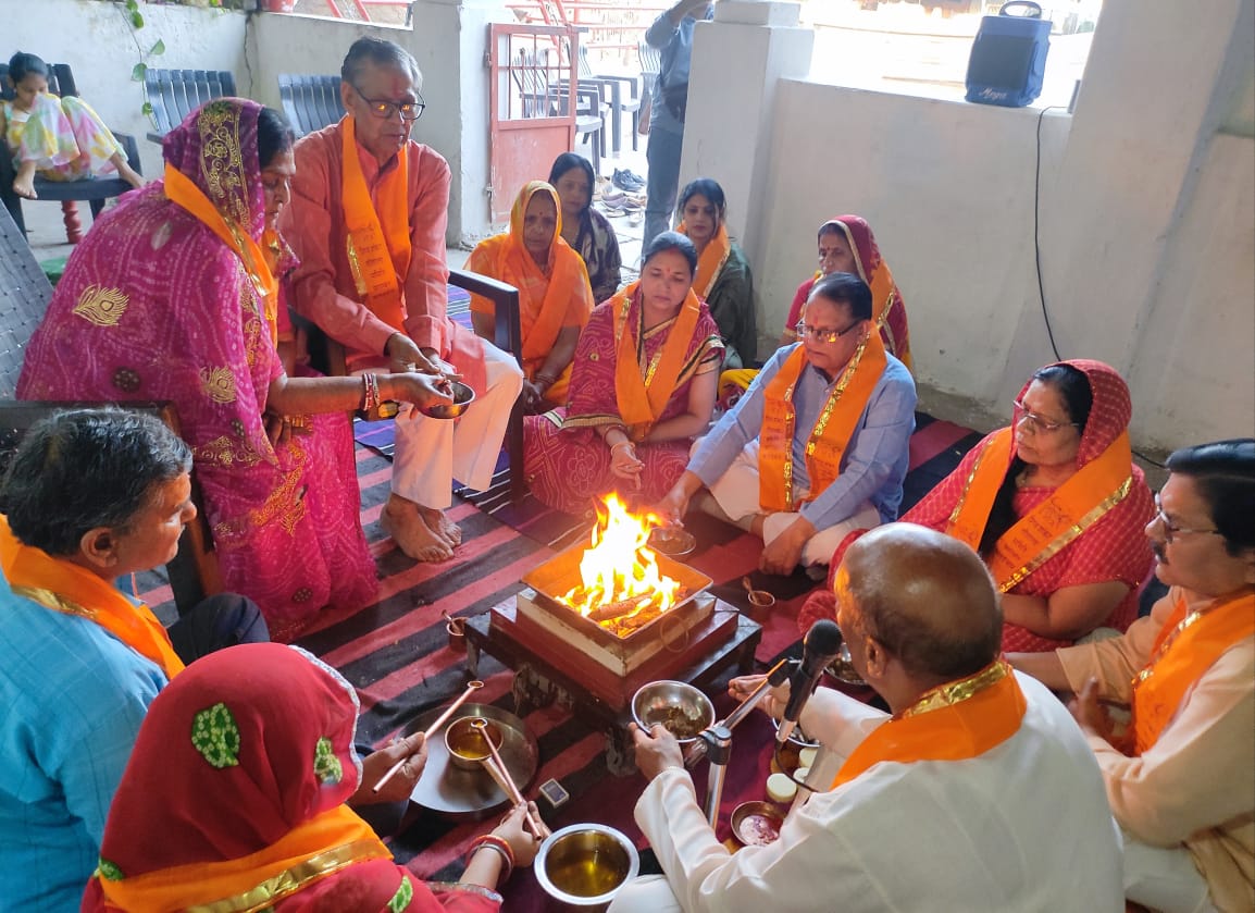 उदयपुर। कामदा एकादशी पर्व पर शिव शंकर गौशाला, कलडवास उदयपुर में सेवार्थ योग आयुर्वेद एवं यज्ञ संस्थान ने निःशुल्क यज्ञ एवं ध्यान वैदिक पुरोहित डॉ भूपेंद्र शर्मा के सानिध्य में किया गया। मिडिया प्रभारी नरेश पूर्बिया ने बताया कि यज्ञ में प्रभा कैलाश गिरी गोस्वामी, मधुबाला नरेश पूर्बिया, सरोज प्रदीप उपाध्याय, प्रगति प्रदीप चौहान ने यज्ञ में आहुतियां दी। प्रभा कैलाश गिरी गोस्वामी ने गौशाला में गोदान किया एवं गौ सेवकों को वस्त्र एवं अन्य सामग्री भेंट की। मधुबाला पूर्बिया, इंदुबाला पूर्बिया, मंजू चौधरी ने गायों को गुड़ एवं रोटियां खिला कर गौ सेवा की। प्रभा कैलाश गिरी गोस्वामी ने गायों के घास हेतु 5100 रुपए आर्थिक सहयोग किया। सभी महिलाओं ने भजनों से वातावरण भक्तिमय बना दिया। कार्यक्रम में सचिव शालिनी राजावत,मीत,माही,चित्रा,अथर्व ,पर्व राजावत,ईशानी पूर्बिया उपस्थित थीं।