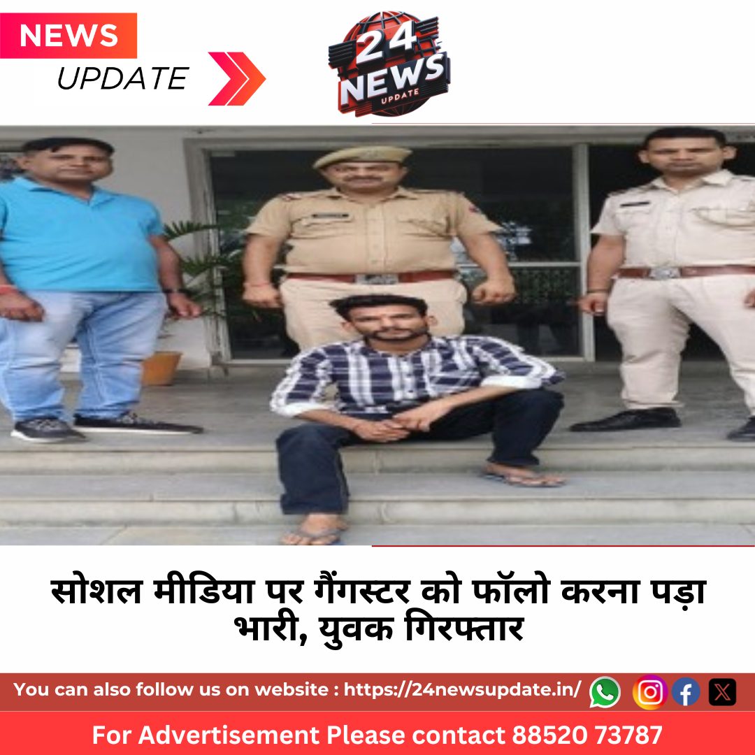 24 News Update उदयपुर. जिले के गोगुंदा थाना पुलिस ने एक युवक को सोशल मीडिया पर गैंगस्टर से जुड़ी गतिविधियों में रुचि दिखाने और अपराधियों को फॉलो करने के मामले में गिरफ्तार किया है। यह कार्रवाई जिला पुलिस अधीक्षक योगेश गोयल के निर्देशन में, अतिरिक्त पुलिस अधीक्षक गोपाल स्वरूप मेवाड़ा एवं वृताधिकारी गिर्वा सूर्यवीर सिंह के सुपरविजन में की गई।