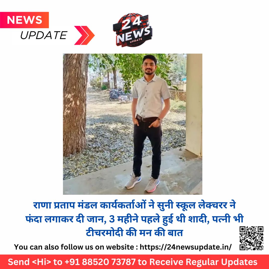 24 न्यूज अपडेट. बांसवाड़ा। बांसवाड़ा के कालिंजरा इलाके में पत्नी से वीडियो कॉल पर बात करने के बाद स्कूल लेक्चरर ने फंदा लगाकर जान दे दी। अध्यापक की 3 महीने पहले ही शादी हुई थी। उनकी पत्नी भी सेकेंड ग्रेड की टीचर है और अजमेर में पोस्टेड है। बताया गया कि सवाई माधोपुर के उलियाना निवासी विनोद मीणा (30) बड़ोदिया उच्च माध्यमिक स्कूल में ग्रेड फर्स्ट (गणित) टीचर है। उनकी पोस्टिंग साल 2021 को हुई। वह बड़ोदिया में किराए से रह रहे थे। विनोद पड़ोसी के घर पर खाना खाते थे। शनिवार रात करीब साढ़े 9 बजे पड़ोस के घर में खाना खाने गए। इस बीच उनकी पत्नी का वीडियो कॉल आ गया। विनोद बात करते हुए अपने कमरे पर आ गया। विनोद ने मोबाइल को अलमारी पर रखा और पंखे से फंदा लगा लिया। इसके बाद पत्नी ने कॉल किया, लेकिन कॉल ही रिसीव नहीं किया। पत्नी ने पड़ोसी को कॉल किया तो उन्होंने खिड़की से झांका। विनोद पंखे से लटका हुआ था। पड़ोसियों ने पुलिस को सूचना दी। युवक ने अंतिम बार पत्नी से वीडियो कॉल पर बात की थी। इसके बाद वह पंखे पर लटक गया। आशंका है कि कॉल पर पत्नी के साथ कुछ विवाद हुआ होगा। पुलिस कॉल डिटेल निकालकर कारणों की तलाश में जुट गई है। स्कूल लेक्चरर के पास कोई सुसाइड नोट नहीं मिला।