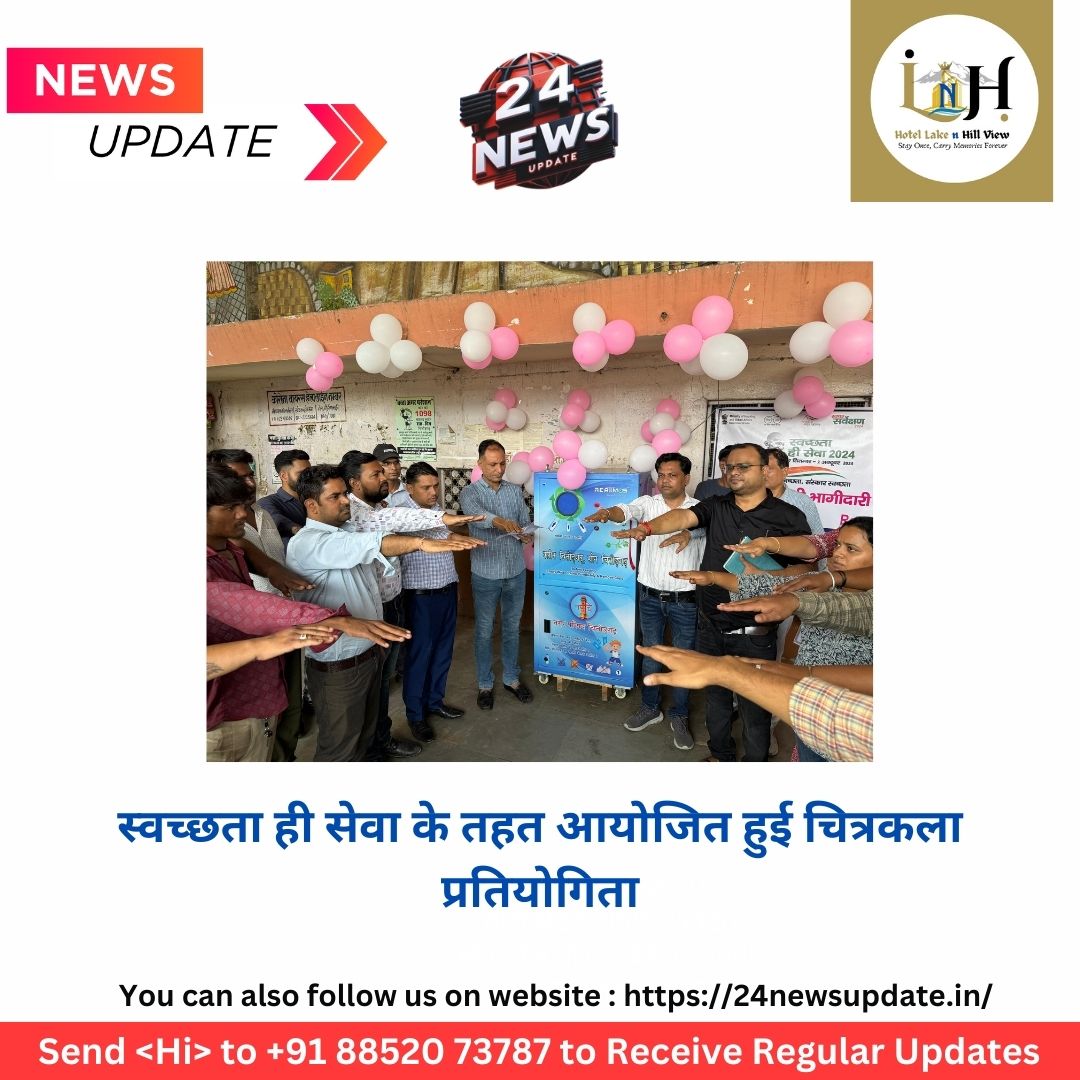 24 न्यूज़ अपडेट चित्तौड़गढ़। नगर परिषद द्वारा स्वच्छता ही सेवा पखवाड़े के तहत बुधवार को विद्यालयो में चित्रकला प्रतियोगिता का आयोजन किया गया। नगर परिषद आयुक्त रवीन्द्र यादव ने बताया कि स्वच्छता ही सेवा अभियान के अंतर्गत बुधवार को नगर परिषद द्वारा शहर में स्थित विद्यालयों में निबंध एवं चित्रकला प्रतियोगिता का आयोजन किया गया। जिसमें छात्र-छात्राओं ने स्वच्छता ही सेवा से संबंधित विषय पर निबंध लेखन व चित्रांकन किया गया, स्वच्छता शपथ दिलाई गई एवं स्वच्छता से संबंधी विषयों पर जानकारी व प्लास्टिक का उपयोग नहीं करने व पर्यावरण अनुकूल उत्पाद का उपयोग करने की सलाह दी गई। उन्होंने बताया कि स्वच्छता ही सेवा अभियान के तहत ही नगर परिषद द्वारा Reduce Reuse Recycle थीम पर बस स्टैंड एवं दूर्ग पर बाॅटल क्रश मशीन व क्लोथ बैग मशीन स्थापित कर नवाचार किया गया, स्वच्छता शपथ दिलाई गई तथा साथ ही कपड़े के थैलों का वितरण कर शहरवासियों व पर्यटकों को सिंगल यूज प्लास्टिक का उपयोग नहीं करने की समझाइश की गई। इस दौरान नगर परिषद के अधिकारी कर्मचारी उपस्थित रहे।