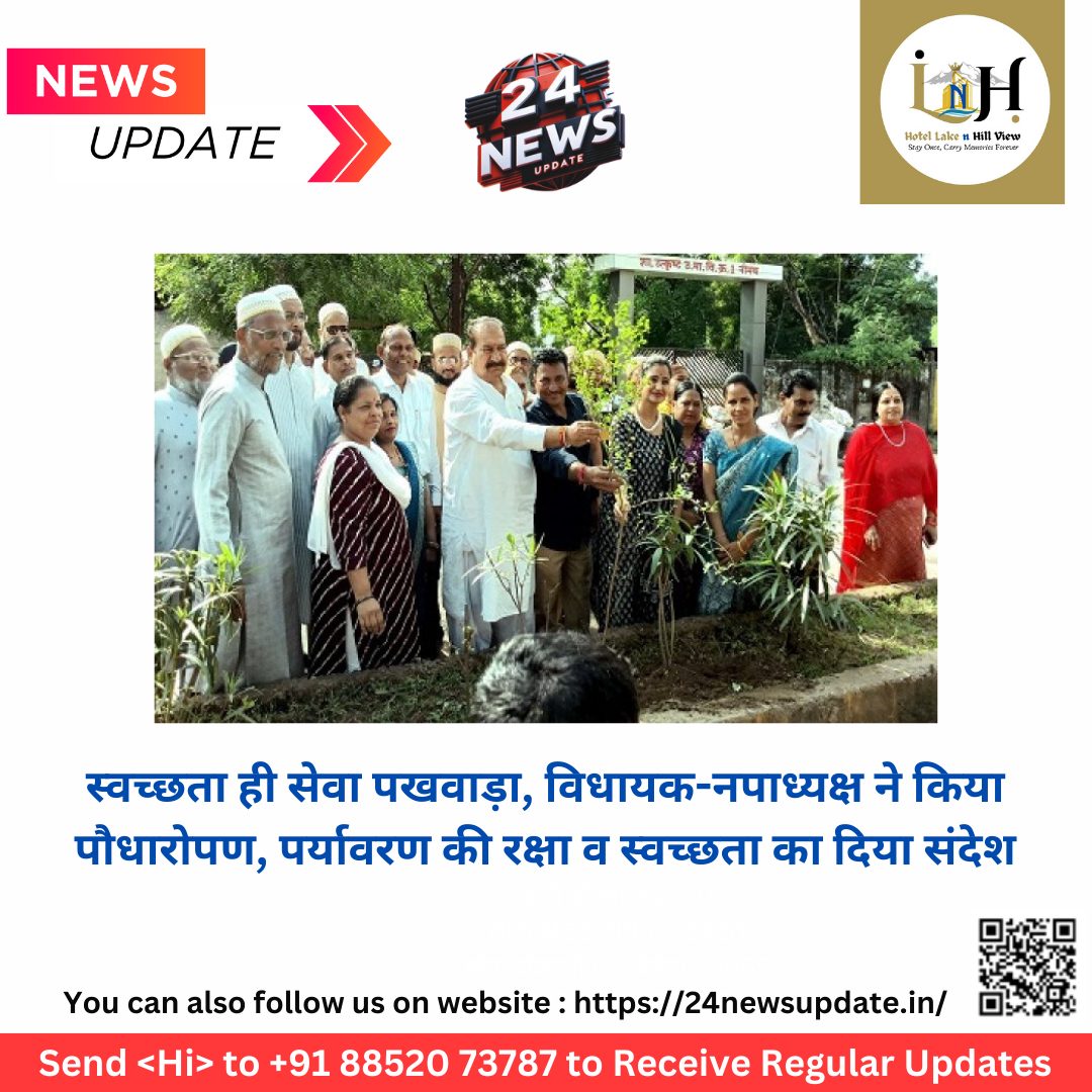 24 न्यूज़ अपडेट निम्बाहेडा, नीमच। स्वच्छ भारत-स्वस्थ भारत के संकल्प के साथ भारत सरकार द्वारा 17 सितम्बर से 2 अक्टूबर तक आयोजित स्वच्छता ही सेवा पखवाड़ा के तहत नगर पालिका द्वारा नपाध्यक्ष स्वाति-गौरव चौपड़ा के मार्गदर्शन एवं सीएमओ महेंद्र वशिष्ठ के नेतृत्व में आयोजित विभिन्न गतिविधियों के अंतर्गत शुक्रवार को नपा द्वारा विधायक दिलीप सिंह परिहार एवं नपाध्यक्ष स्वाति-गौरव चौपड़ा की उपस्थिति में उत्कृष्ट विद्यालय रोड पर पौधारोपण कार्यक्रम आयोजित किया।