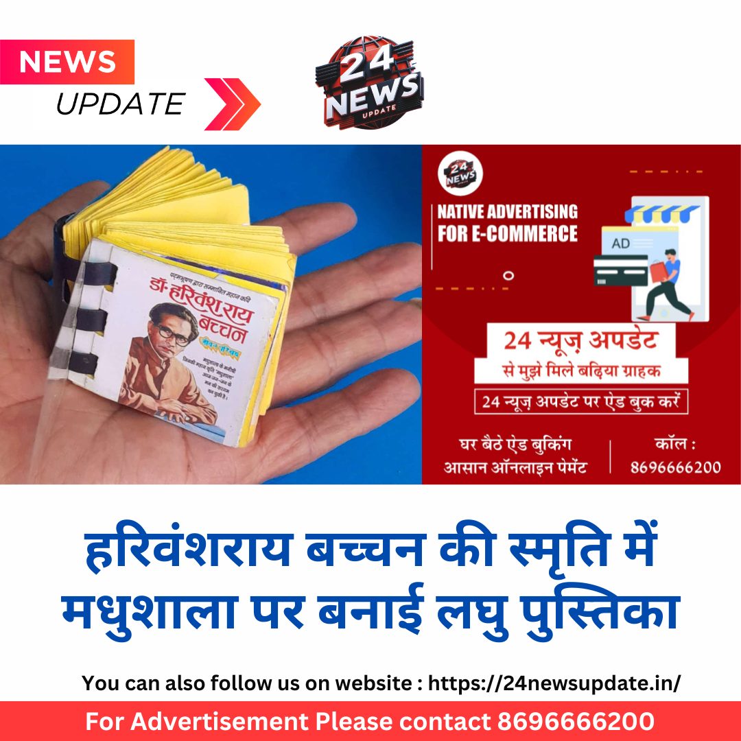 24 न्यूज अपडेट उदयपुर 30 नवंबर। मोहनलाल सुखाडिया विश्वविद्यालय के उर्दू विभाग में कवि श्री हरिवंशराय बच्चन की 117वीं जयंती पर आयोजित विचार गोष्ठी में शहर के ख्यातनाम शिल्पकार चन्द्रप्रकाश चित्तौडा द्वारा दिवंगत श्री बच्चन की प्रमुख कृति मधुशाला’ पर आधारित लघु पुस्तिका का विमोचन उर्दू विभाग के अध्यक्ष डॉ. आशीष सिसोदिया ने किया गया। डॉ. सिसोदिया ने कहा कि ’मधुशाला’ ने घोर हताशा में डूबे नवयुवकों में नवीन आशा का संचार करने में महत्वपूर्ण भूमिका निभाई है। उन्होने चित्तौडा के लगन व जुनून की प्रशंसा की। चित्तौड़ा ने बताया कि हरिवंश राय बच्चन हिंदी भाषा के एक कवि और लेखक थे। वे हिन्दी कविता के उत्तर छायावाद काल के प्रमुख कवियों में से एक थे । उनकी सबसे प्रसिद्ध कृति मधुशाला है जो आज के युवाओं को प्रेरित करती है और हर वर्ग को प्रभावित।