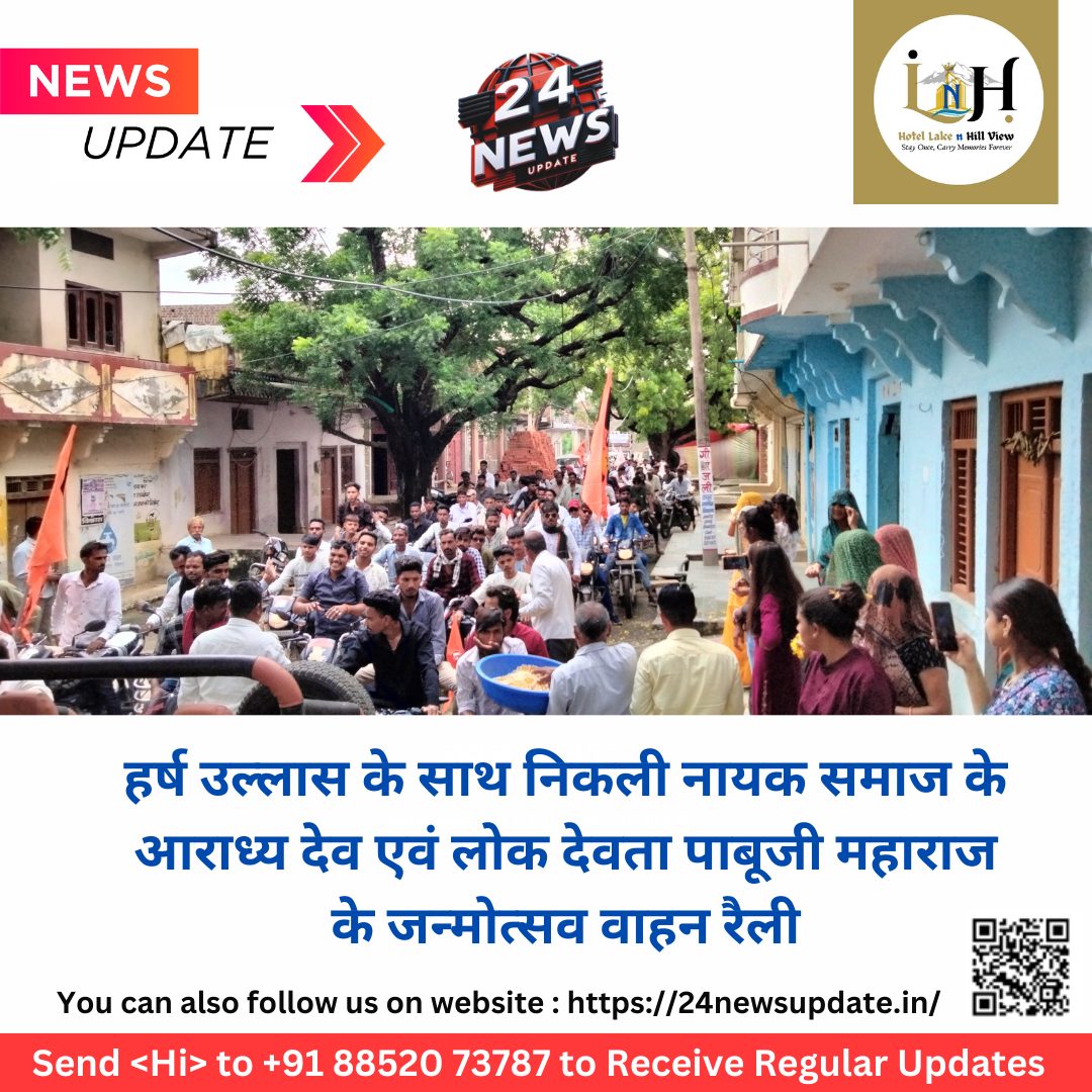 24 न्यूज़ अपडेट निम्बाहेडा। निंबाहेड़ा क्षत्रिय नायक समाज के आराध्या देव एवं लोक देवता श्री श्री 1008 पाबूजी महाराज के जन्मोत्सव पर जागृति वाहन रैली निकाली गई।