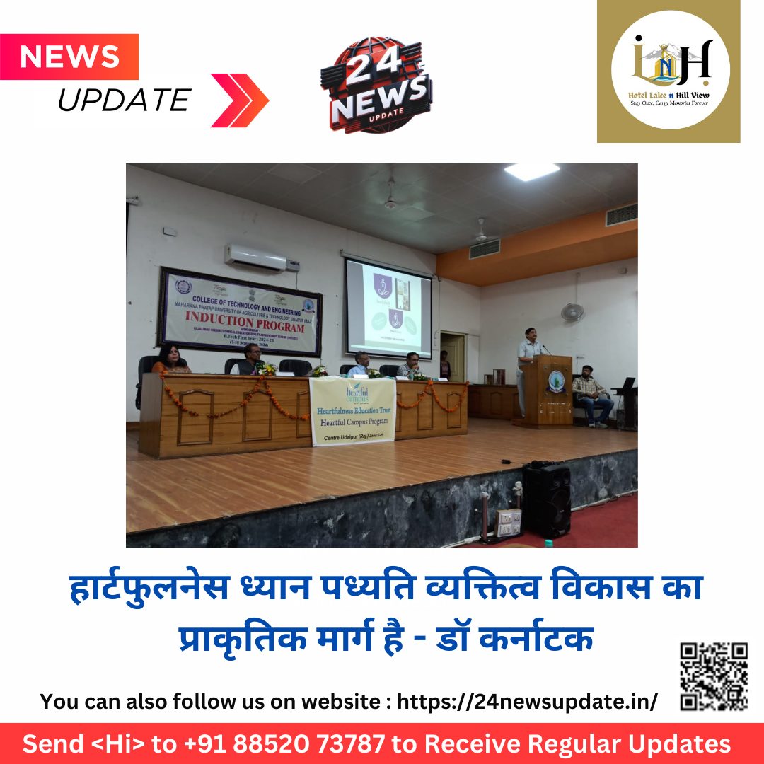 24 न्यूज़ अपडेट उदयपुर। हम हमेशा यही सोच कर चिंतित रहते है कि दूसरे व्यक्तियों के पास क्या है, उनकी संपन्नात और सुख सुविधाओं को देख कर ही दुखी रहते है, यदि हम अपने से नीचे और वंचित लोगों को देखेंगे तो हमे अपनी वर्त मान स्थिति और उपलब्धि का भान होता है, हम इसके लिए सदा ईश्वर का धन्यवाद और आभार प्रकट करना चाहिए, हमे सभी को साथ ले कर सोचना और चलना चाहिए। हमे प्रकृति के साथ मिल जुल कर रहना चाहिए और हार्टफुलनेस ध्यान हमें प्रकृति के साथ रहने, ध्यान के द्वारा सभी से जुड़ने और जीवन में दिल की बात सुन कर अपने लक्ष्य को प्राप्त करने का सरल रास्ता दिखाता है। सी टी ऐ ई के नव आगंतुक छात्र छात्राओं को इंडक्शन प्रोग्राम में संबोधित करते हुए एम पी यु ऐ टी के कुलपति डॉ अजीत कुमार कर्नाटक ने यह बात कही। उन्होंने गौतम बुद्ध, स्वामी विवेकानंद इत्यादि का उदाहरण देते हुए युवा विधार्थियों को आत्म बल, आत्म विश्वास और ईश्वर के बताये अध्यात्मिकता जीवन को अपनाने की बात कही।