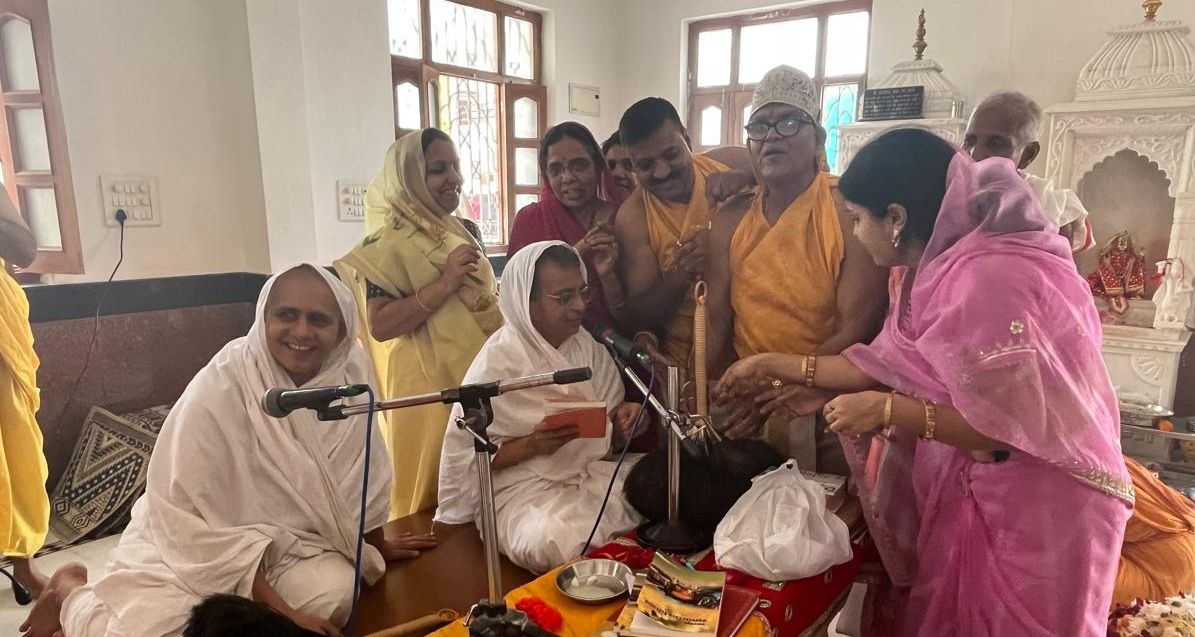 24 News update उदयपुर। झीलों की नगरी के पदमप्रभु दिगंबर जैन मंदिर पायडा में आचार्य आदि सागर अंकलीकर परंपरा में तपस्वी सम्राट आचार्य सन्मति सागर एवं प्रथम गणिनी आर्यिका विजय मति माताजी की शिष्या नमनश्री माताजी एवं विनय प्रभा माताजी के सानिध्य में रक्षाबंधन महापर्व पर विष्णु कुमार मुनि एवं अकम्पनाचार्य महामुनि राज एवं 700 मुनिराज की महा पूजा अष्टद्रव्य से 63 थाल सजाकर 63 महानुभावों द्वारा अलग-अलग द्रव्य से अंजू दीदी एवं सन्मति दीदी के नेतृत्व में की गई। प्रवक्ता संजय गुडलिया ने बताया कि 16 दिवसीय शांति विधान का समापन एवं हवन किया गया। श्रेयांस नाथ भगवान के मोक्ष कल्याणक पर्व पर निर्वाण लड्डू बसंती लाल सुमति प्रकाश जी मूणावत परिवार द्वारा चढ़ाया गया। पदम प्रभु भगवान की वेदी में प्रथम राखी सेठ धनराज सकावत परिवार एवं जिनवाणी की राखी कन्यालाल जावरिया परिवार की तरफ से अर्पित की गई एवं आर्यिका नमन श्री माताजी के प्रकाश चंद्र अदवासिया व नमोस्तू शासन परिवार एवं विनय प्रभा माताजी के सुरेश जी चिबोडिया परिवार की तरफ से अर्पित की गई अंत में आर्यिका श्री के पाद प्रक्षालन डॉक्टर अंशुल जी रांची द्वारा किया गया इस अवसर हजारों श्रावक श्राविकाएं मौजूद रही।