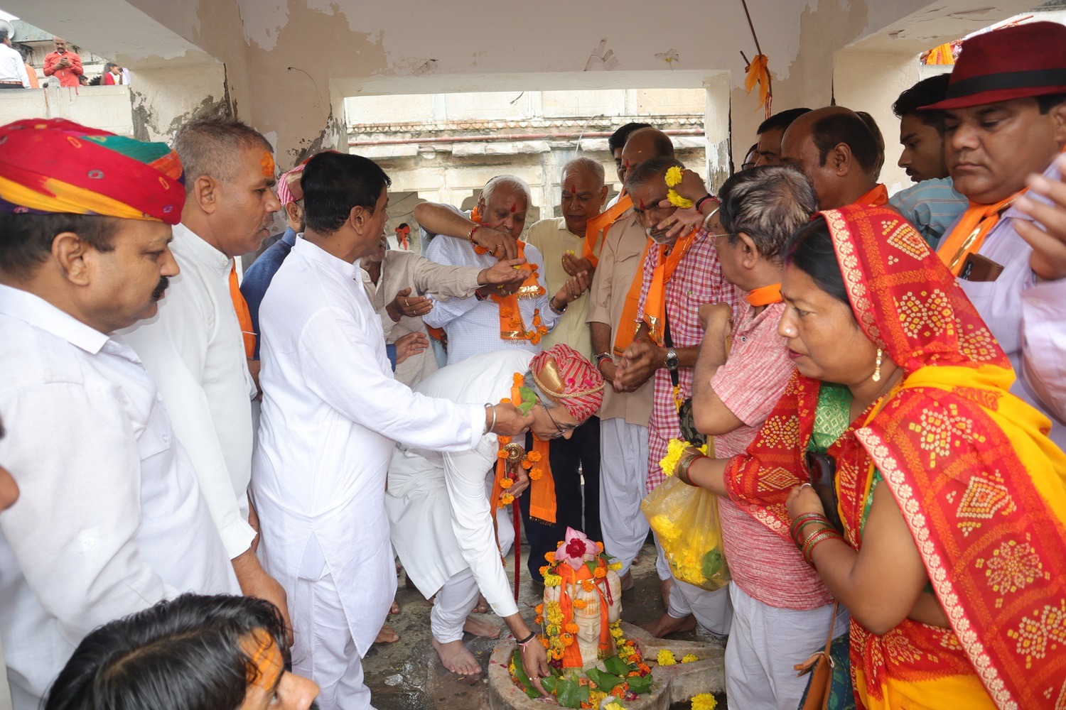24 न्यूज अपडेट उदयपुर। उदयपुर 09 अगस्त / देश में सुख शांति एवं अच्छी वर्षा की कामना को लेकर शिव महोत्सव समिति की ओर से 51 कार्यकर्ताओं के साथ 2006 में मेवाड़ में पहली बार शुरू की गई कावड यात्रा ने आज अपना विराट स्वरूप ले लिया है। समिति की ओर से शुक्रवार को 19वीं कावड़ यात्रा निकाली गई। भारी पुलिस जाब्ते के बीच हजारों की संख्यॉ में महिला, पुरूष ने 5000 वर्ष पुराने गंगा के चौथे पाये गंगु कुंड से पानी भर शहर के विभिन्न मार्गो से होती 21 किलोमीटर पैदल चल उभयेश्वर महादेव मंदिर पहुंची जहॉ 11 हजार से अधिक कावड़ियों ने व महादेव के भक्तों ने महादेव का अभिषेक किया। अभिषेक के समय कावड़ोें को लम्बा इंतजार करना पड़ा। कावड़ यात्रा में महिलाओं की भागीदारी अधिक रही। अध्यक्ष यज्ञ नारायण शर्मा ने बताया कि यात्रा का शुभारंभ तांबे के कलश में भरे सात नदियों के पवित्र जल की मुख्य अतिथि नाथद्वारा विधायक विश्वराज सिंह मेवाड़, शहर विधायक ताराचंद जैन, जिलाध्यक्ष रविन्द्र श्रीमाली, देहात अध्यक्ष चन्द्रगुप्त सिंह चौहान, पूर्व अध्यक्ष दिनेश भटट्, भंवर सिंह पंवार, प्रेम सिंह शक्तावत, नरेन्द्र मीणा, कमलेन्द्र सिंह पंवार, तख्तसिंह, मनोहर चौधरी, महेश भावसार, रामकृपा शर्मा, जगत, आकाश बागरेचा, एडवोकेट मनीष शर्मा, देवीलाल गुर्जर, देवी सिंह सिसोदिया, घनश्याम सिंह सोलंकी, सुरेश रावत, डॉ. ओम साहू, पुरूषोतम पारासर ने विधि विधान से पूजा अर्चना कर शुभ मुहूर्त मंे कावड़ यात्रा को रवाना की। पूरे रास्ते कावड़ियें महादेव के जयकारे लगाते हुए चल रहे थे। पूरे रास्ते कावड़ यात्रा का पुष्प वर्षा से स्वागत किया गया। रास्ते सामाजिक एवं राजनीति संगठनों ने स्वागत द्वार लगा स्वागत किया। पहला कावड़िया 10.45 बजे पहुंच महादेव का जलाभिषेक किया। सायं 04 बजे तक कावड़िये आते रहे। शोभागपुरा मित्र मंडल के सदस्यों ने 51 किलो जल की कावड़ ले पूरे रास्ते बारी बारी से लेते हुए चल रहे थे।