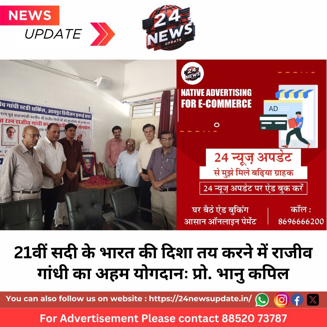 24 न्यूज अपडेट, उदयपुर। उदयपुर में राजीव गांधी स्टडी सर्किल की ओर से भारत रत्न स्वर्गीय श्री राजीव गांधी की पुण्यतिथि के अवसर पर एक श्रद्धांजलि सभा एवं “राष्ट्र निर्माण में भारत रत्न श्री राजीव गांधी का योगदान” विषयक सेमिनार का आयोजन किया गया। इस कार्यक्रम में विभिन्न शिक्षाविदों, विद्यार्थियों और गणमान्य नागरिकों ने भाग लिया।