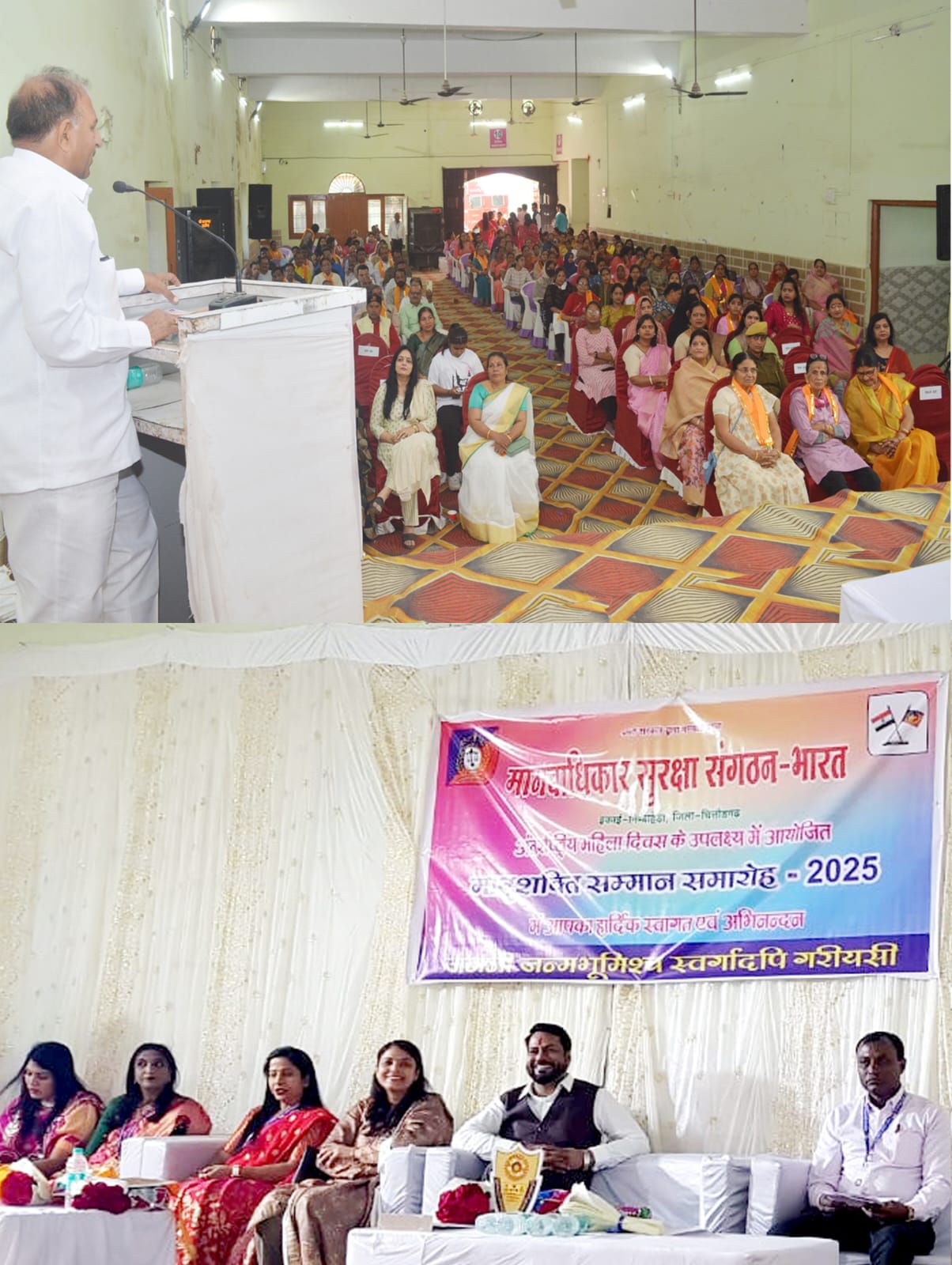 24 न्यूज़ अपडेट निम्बाहेडा। मानवाधिकार सुरक्षा संगठन भारत इकाई निंबाहेड़ा जिला चित्तौड़गढ़ द्वारा अंतर्राष्ट्रीय महिला दिवस के उपलक्ष्य में मातृ शक्ति सम्मान समारोह आयोजित किया गया। कार्यक्रम के मुख्य अतिथि पूर्व विधायक अशोक नवलखा रहे, अति विशिष्ट अतिथि प्रदेश अध्यक्ष पंकज राज मेवाड़ा रहे, विशिष्ट अतिथि जिला लोकपाल डॉक्टर प्रतिभा तिवारी एवं डॉ जे एम जैन रहे। कार्यक्रम की अध्यक्षता जिलाध्यक्ष रेखा पारख ने की। संभाग उपाध्यक्ष मनीषा मोदी एवं तहसील अध्यक्ष शिखा जैन भी मंचासीन रही। अतिथियों द्वारा दीप प्रज्वलन कर कार्यक्रम का शुभारंभ किया गया। स्वागत गीत शिल्पा चौरड़िया, अनीता पगारिया, मैना भड़कत्या, शिखा जैन ने प्रस्तुत किया। अतिथियों का परिचय पंकज कुमार झा ने करवाया। अतिथियों का स्वागत मानव अधिकार सुरक्षा संगठन भारत के संभाग उपाध्यक्ष अधिवक्ता गजेंद्र सिंह पँवार, जिला अध्यक्ष कमलकांत दत्त, तहसील अध्यक्ष भगवती प्रजापत, जिला उपाध्यक्ष विनोद जैन, जिला उपाध्यक्ष एडवोकेट नितिन सेठिया, विशाल गोखरू, सत्यनारायण जोशी, कोषाध्यक्ष दीपिका गर्ग, जिला उपाध्यक्ष संगीता दक, निकिता बोडाना, शिल्पा चौरड़िया, अनीता लोढ़ा, अनीता पगारिया, नीलू शर्मा, सपना नाहर, निर्मला कडावत, विजयलक्ष्मी पटवारी, मैना भड़कत्या, सरोज गांग, दिशा होटवानी, सोनू सिंघवी, सोनिका काबरा, दीपेश जांगिड, जगदीश अग्रवाल ने अतिथियों का ऊपरना, पगड़ी, मोमेंटो एवं पुष्प गुच्छ देकर के स्वागत किया।